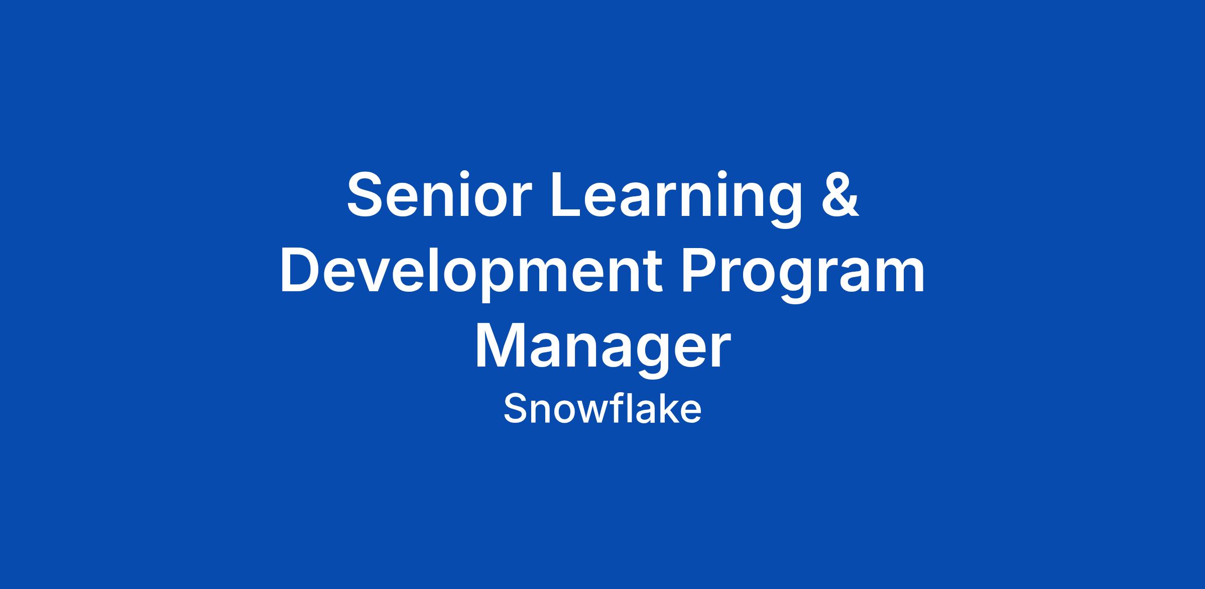 At Snowflake, we are powering the era of the agentic enterprise. To usher in this new era, we seek AI-native thinkers across every function who are energized by the opportunity to reinvent how they work. You donβt just use tools; you possess an innate curiosity, treating AI as a high-trust collaborator that is core to how you solve problems and accelerate your impact. We look for low-ego individuals who thrive in dynamic and fast-moving environments and move with an experimental mindset β who rapidly test emerging capabilities to discover simpler, more powerful ways to deliver results. At Snowflake, your role isn't just to execute a function, but to help redefine the future of how work gets done. Snowflake is building a new and evolving Learning & Development (L&D) function and is seeking a Senior L&D Program Manager to help create meaningful learning experiences for Snowflakes across the company. This role is an opportunity to build and experiment β trying new approaches, learning what resonates, and shaping development programs employees actually want to engage with. This role focuses on designing learning experiences that support everyday effectiveness and growth, including skil