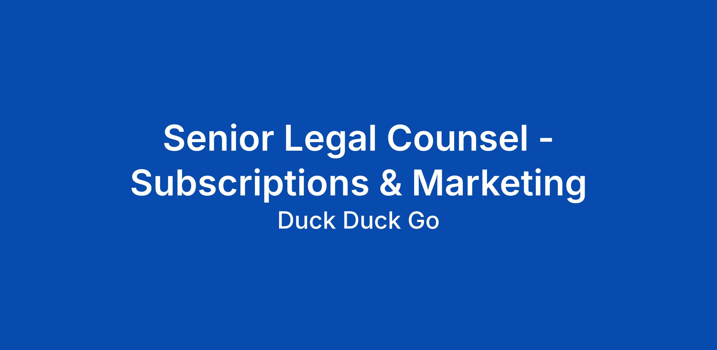 Working on the Law & Policy team, you'll serve as the dedicated legal expert for DuckDuckGo's subscription offering, ensuring we remain compliant across a growing range of global jurisdictions while enabling the business to move fast with confidence. You'll play a role in enabling DuckDuckGoβs subscription growth internationally by navigating the complex legal requirements that come with launching in new markets. Alongside work closely with product, engineering, marketing, and finance teams to embed legal thinking into day-to-day decisions, and work on related projects.