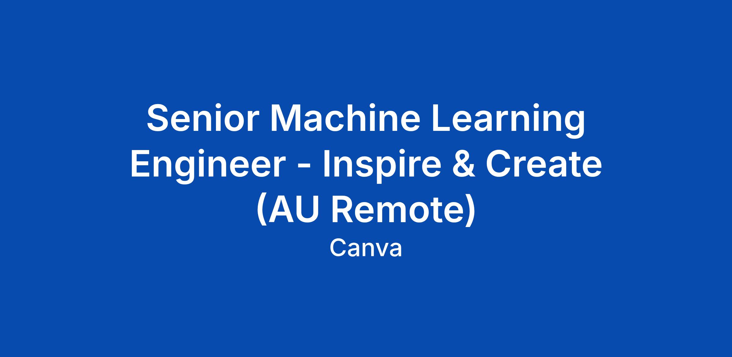 Senior Machine Learning Engineer - Inspire & Create (AU Remote)