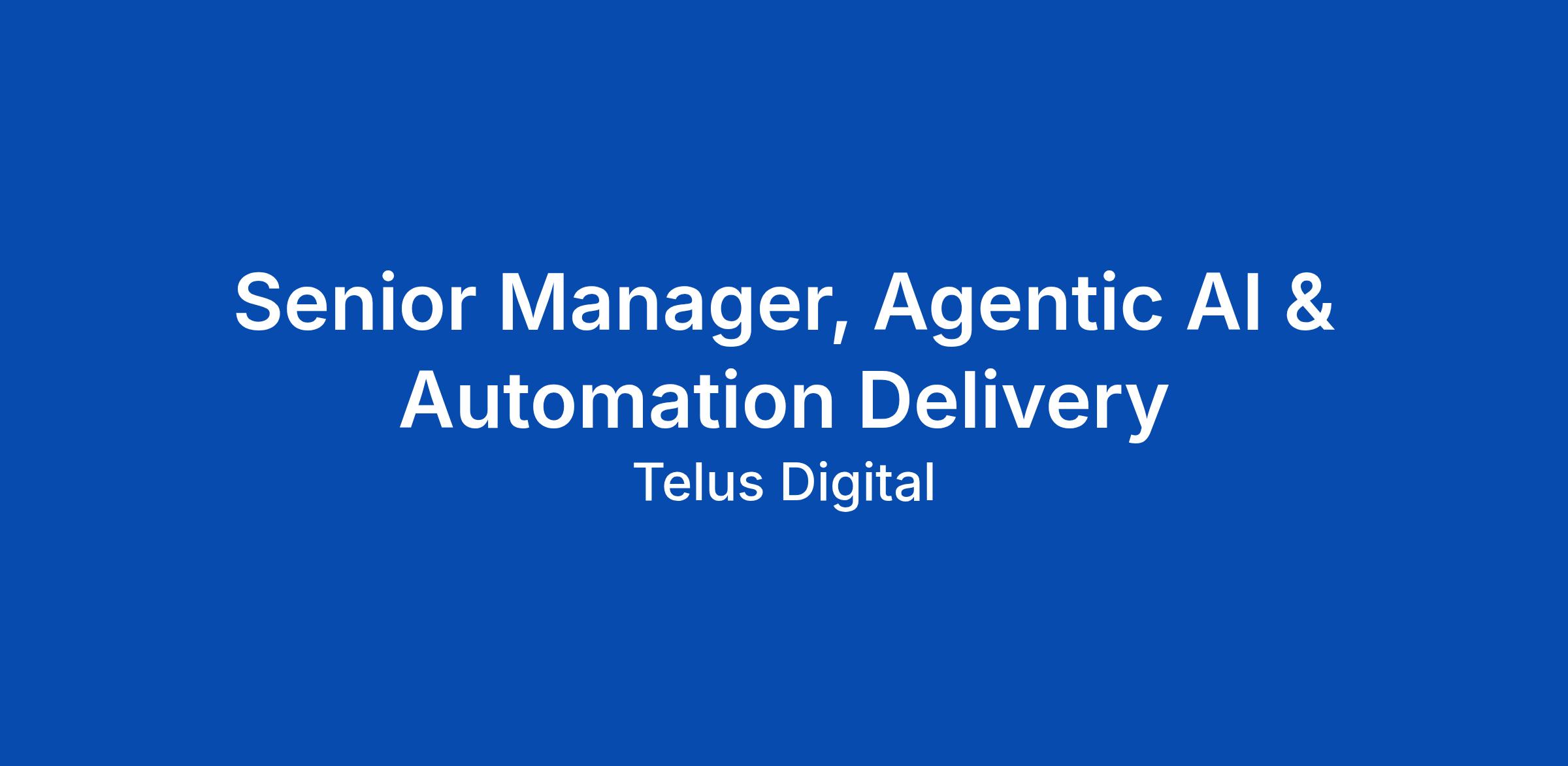 Senior Manager, Agentic AI & Automation Delivery