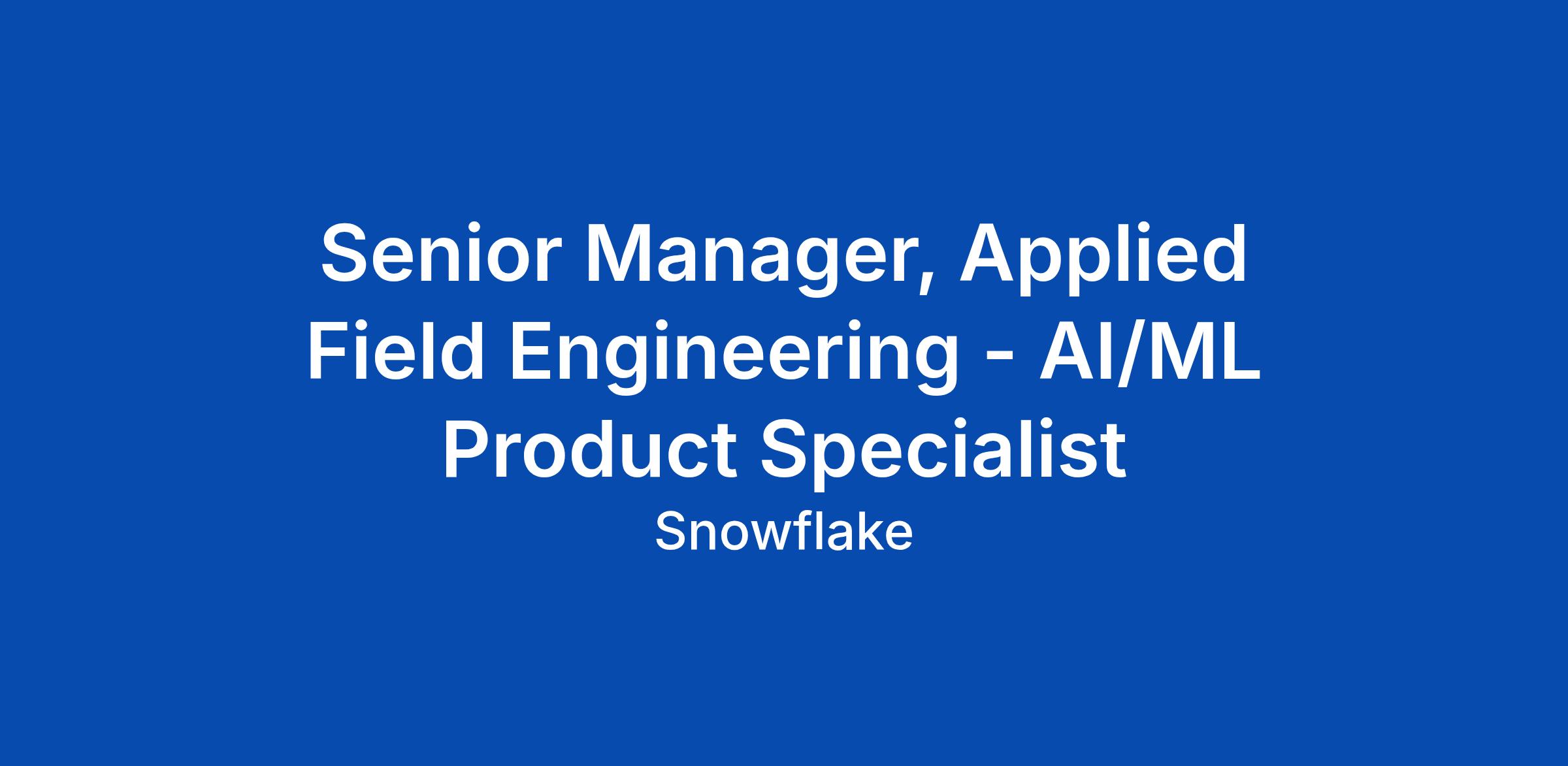 At Snowflake, we are powering the era of the agentic enterprise. To usher in this new era, we seek AI-native thinkers across every function who are energized by the opportunity to reinvent how they work. You donβt just use tools; you possess an innate curiosity, treating AI as a high-trust collaborator that is core to how you solve problems and accelerate your impact. We look for low-ego individuals who thrive in dynamic and fast-moving environments and move with an experimental mindset β who rapidly test emerging capabilities to discover simpler, more powerful ways to deliver results. At Snowflake, your role isn't just to execute a function, but to help redefine the future of how work gets done. At Snowflake, we empower both enterprises and individuals to reach their full potential. Our culture prioritizes impact, innovation, and collaboration, making Snowflake the ideal place to build ambitious projects, execute quickly, and advance technology β and your career β to the next level. The Role We are seeking a Manager, Applied Field Engineering - AI/ML Product Specialists to lead a high-performing team of Applied Field Engineers within the Applied Field Engineering organization. In ... Click Apply to read the full job description.