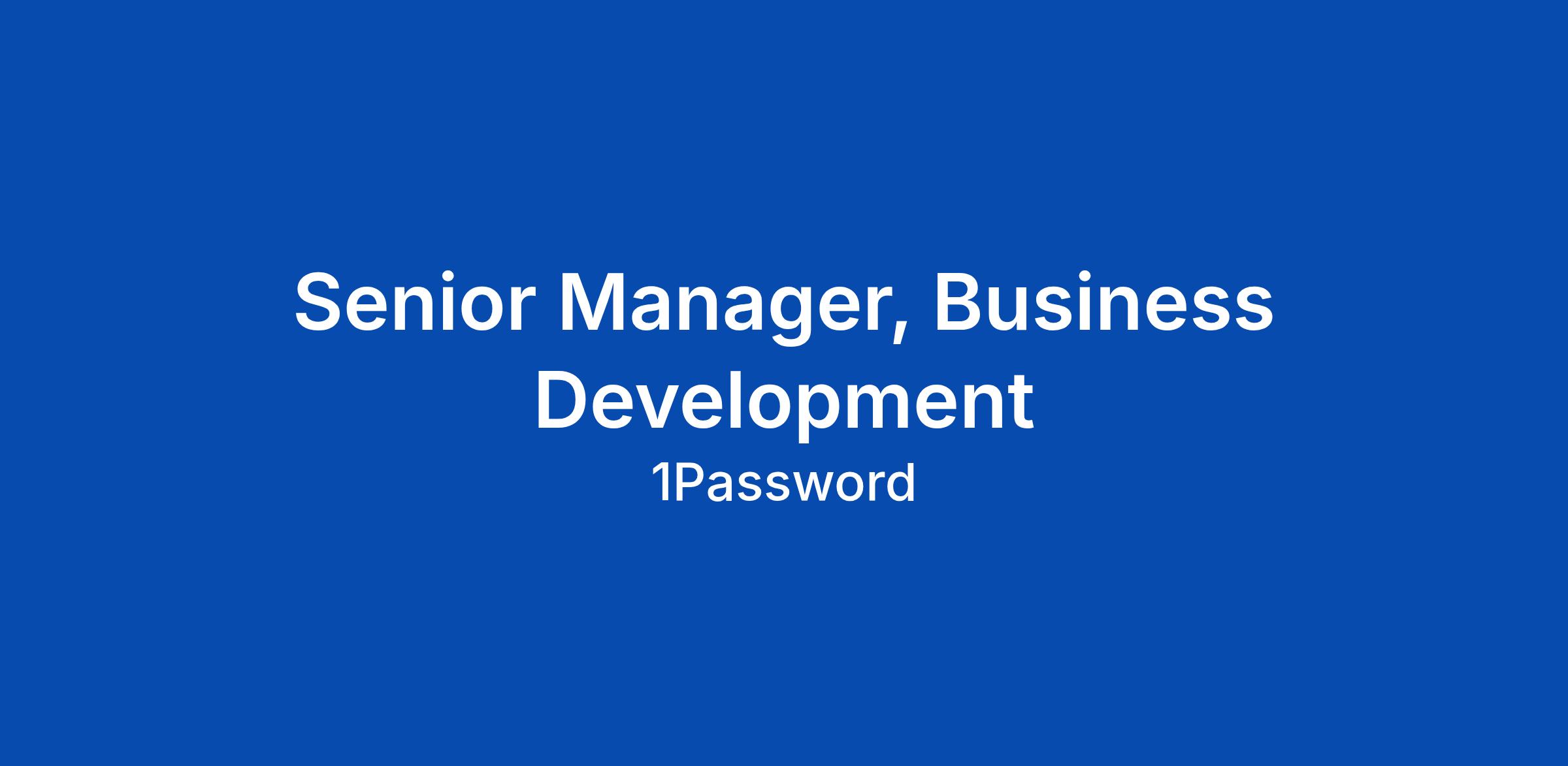 Senior Manager, Business Development
