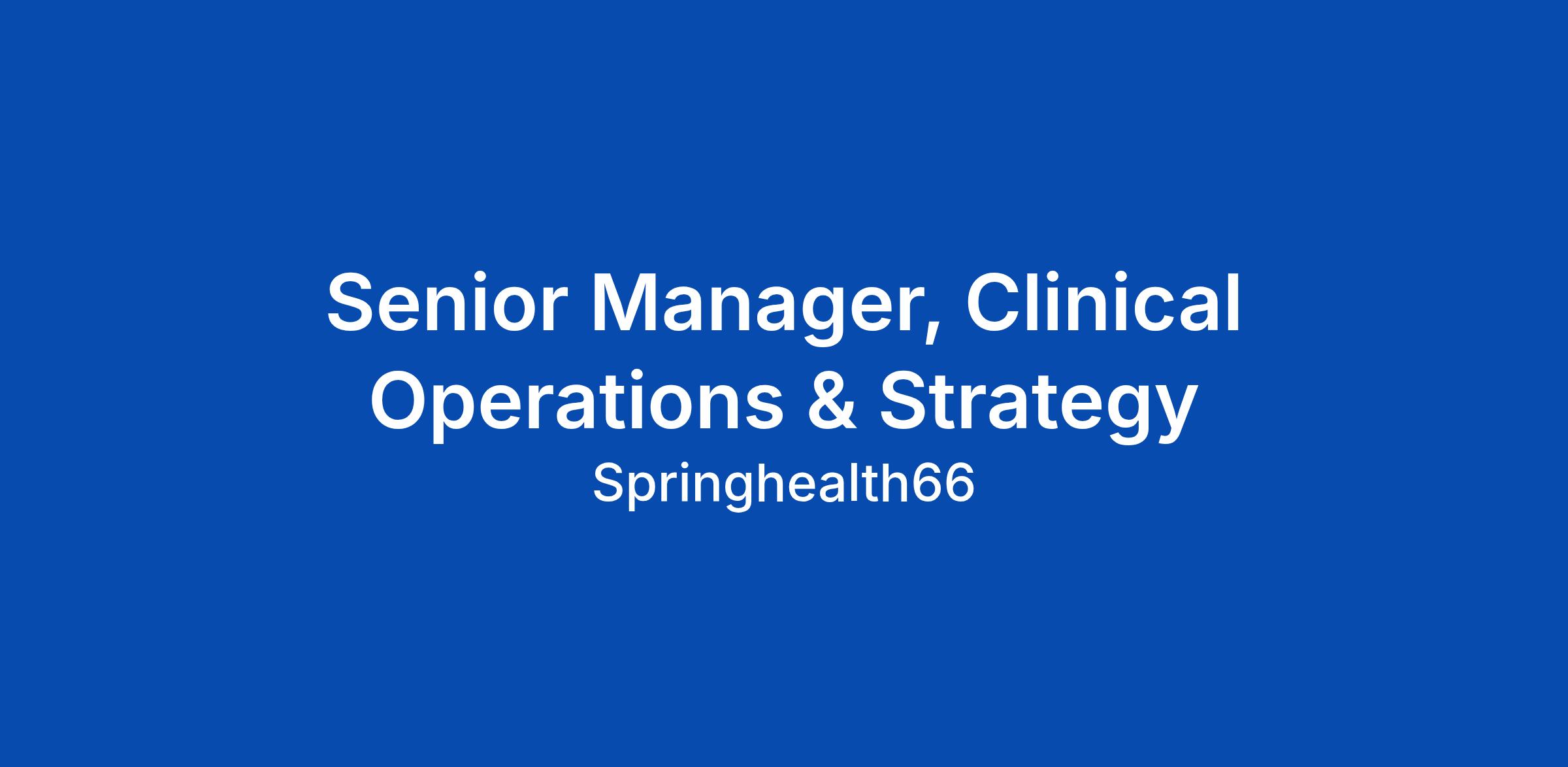 Senior Manager, Clinical Operations & Strategy