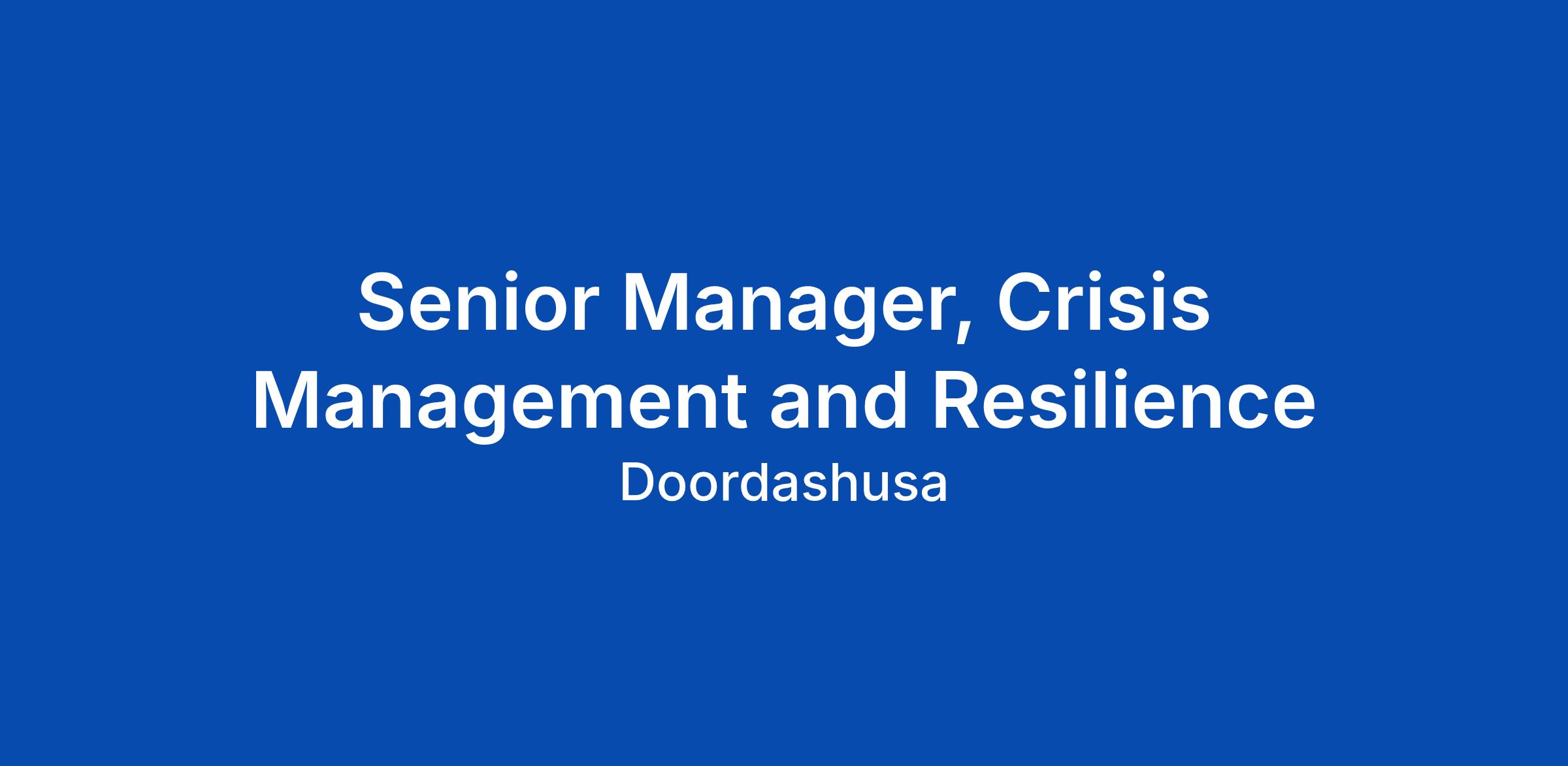 We are hiring a Senior Manager, Crisis Management and Resilience to build and lead the next evolution of DoorDashβs global resilience capability. This role sits at the heart of the companyβs mission