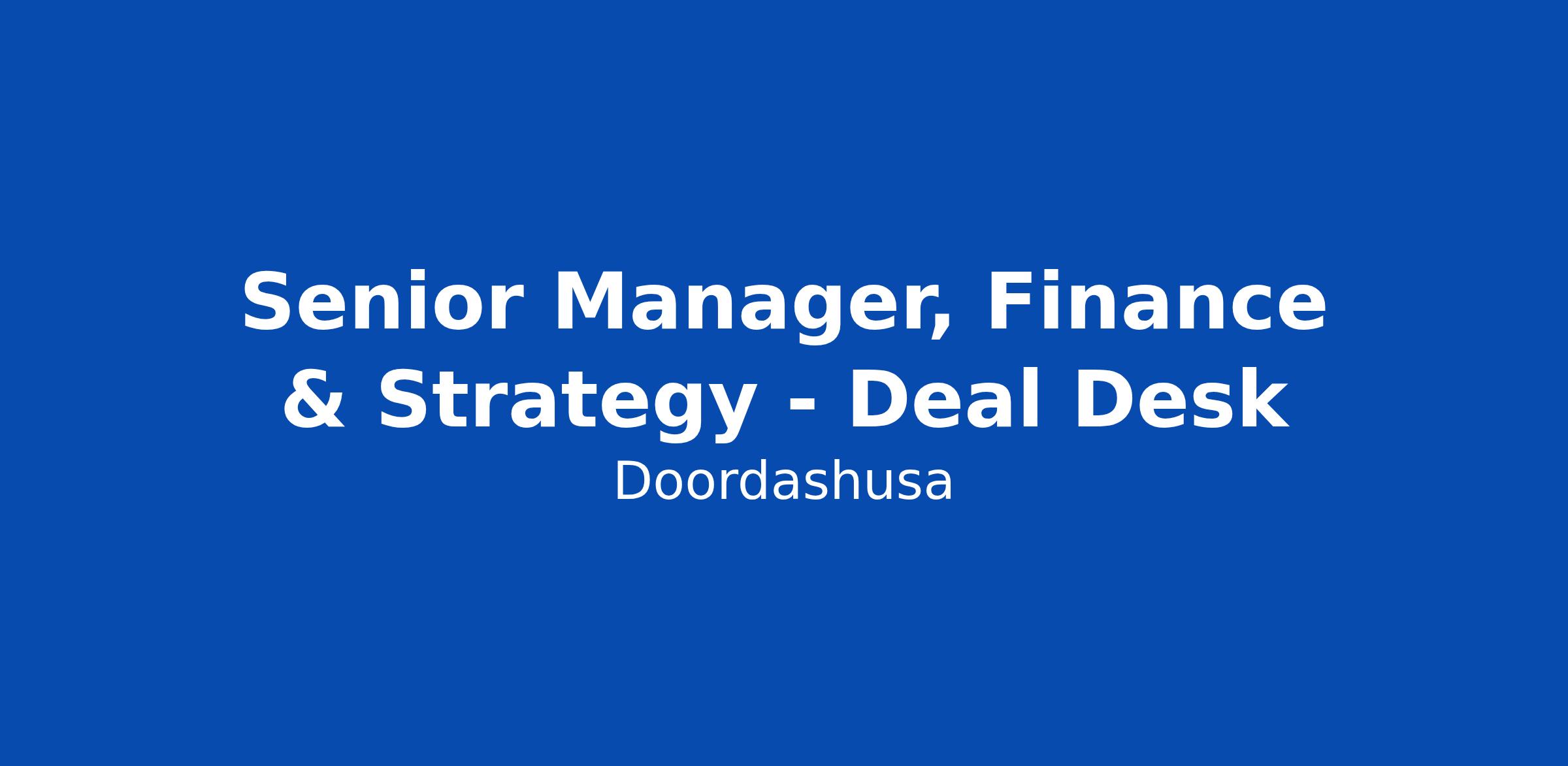 Senior Manager, Finance & Strategy - Deal Desk