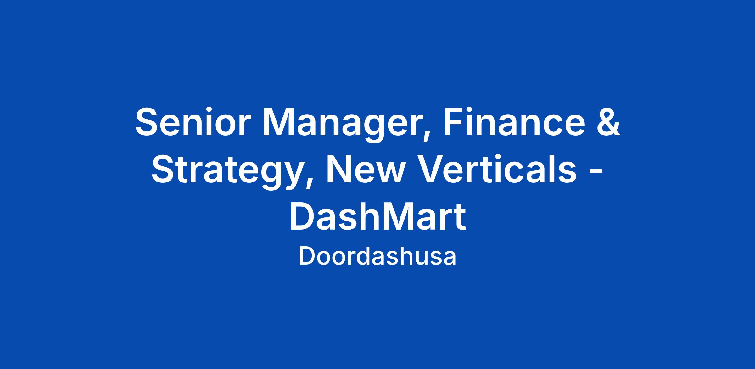 We’re looking for a strategic finance leader to help us accelerate our DashMart efforts.