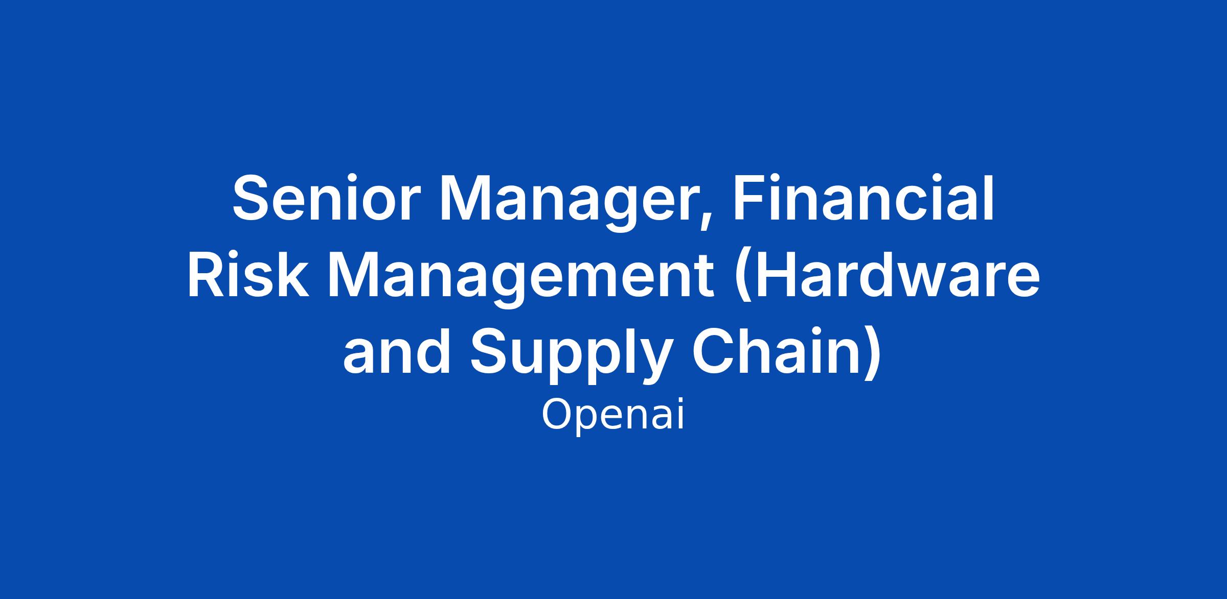 About the Team The Internal Controls function sits within the broader Finance Risk Management (FRM) organization and plays a key role in strengthening the integrity, scalability, and reliability of OpenAIβs finance-critical operations. Our team designs and governs the Internal Controls over Financial Reporting (ICFR) framework that supports accurate, transparent financial results. We focus on business-process controls across areas like procure-to-pay, payroll, revenue, month-end close, and infrastructure-related spend. We work closely with Controllership, Procurement, Hardware, Strategic Finance, Legal, and Compliance to ensure processes are well-designed, well-documented, and audit-ready. As part of FRM, we contribute to OpenAIβs overall financial risk posture by supporting audit readiness, third-party risk considerations, and ongoing process improvements across the finance ecosystem. Together, we help build the foundation of trust and operational clarity needed for OpenAI to scale responsibly. About the Role Weβre seeking a Senior Manager, Financial Risk Management to lead hardware and supply chain controls for one of OpenAIβs most dynamic and evolving operating environments. Thi