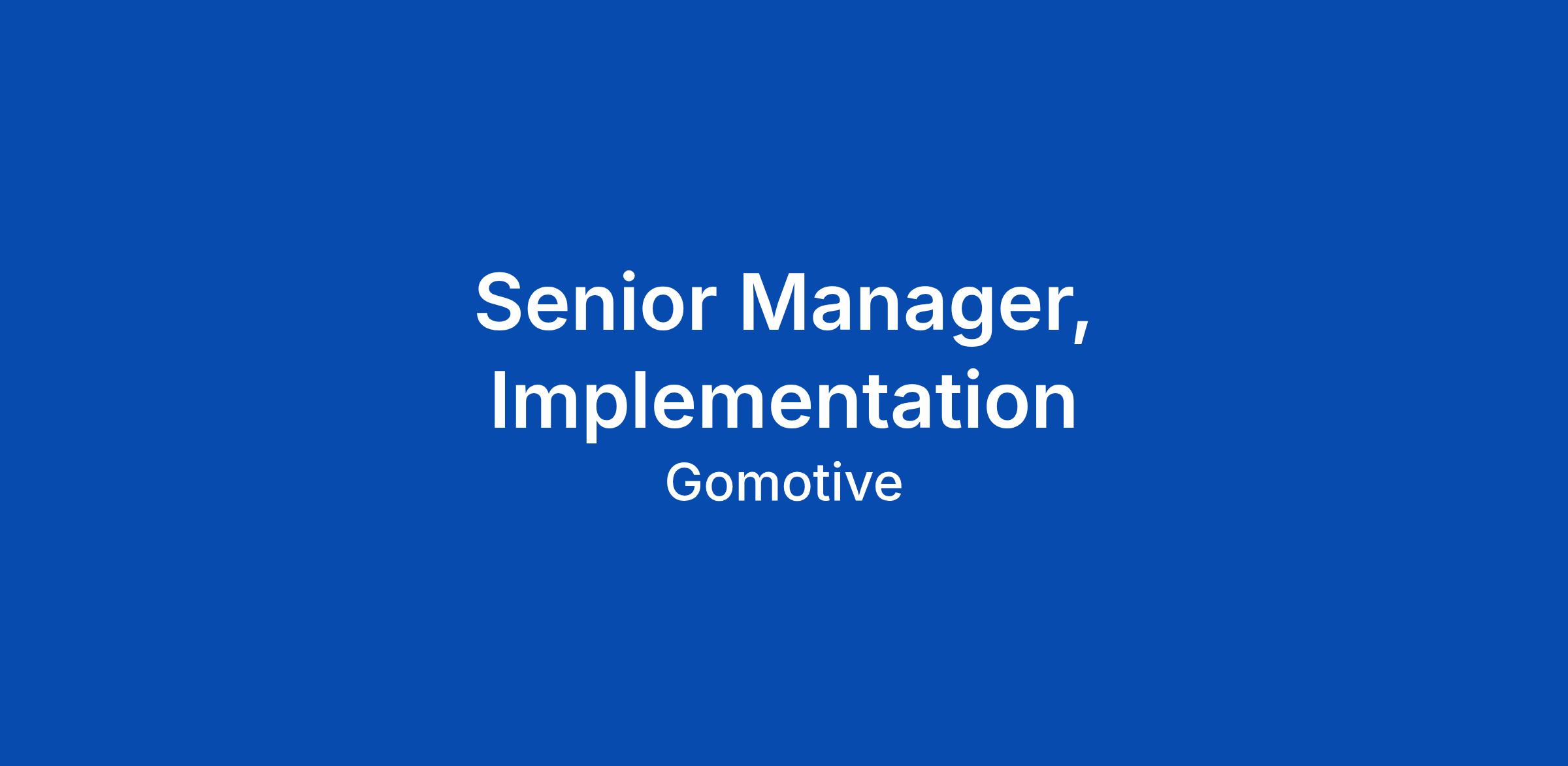 Senior Manager, Implementation