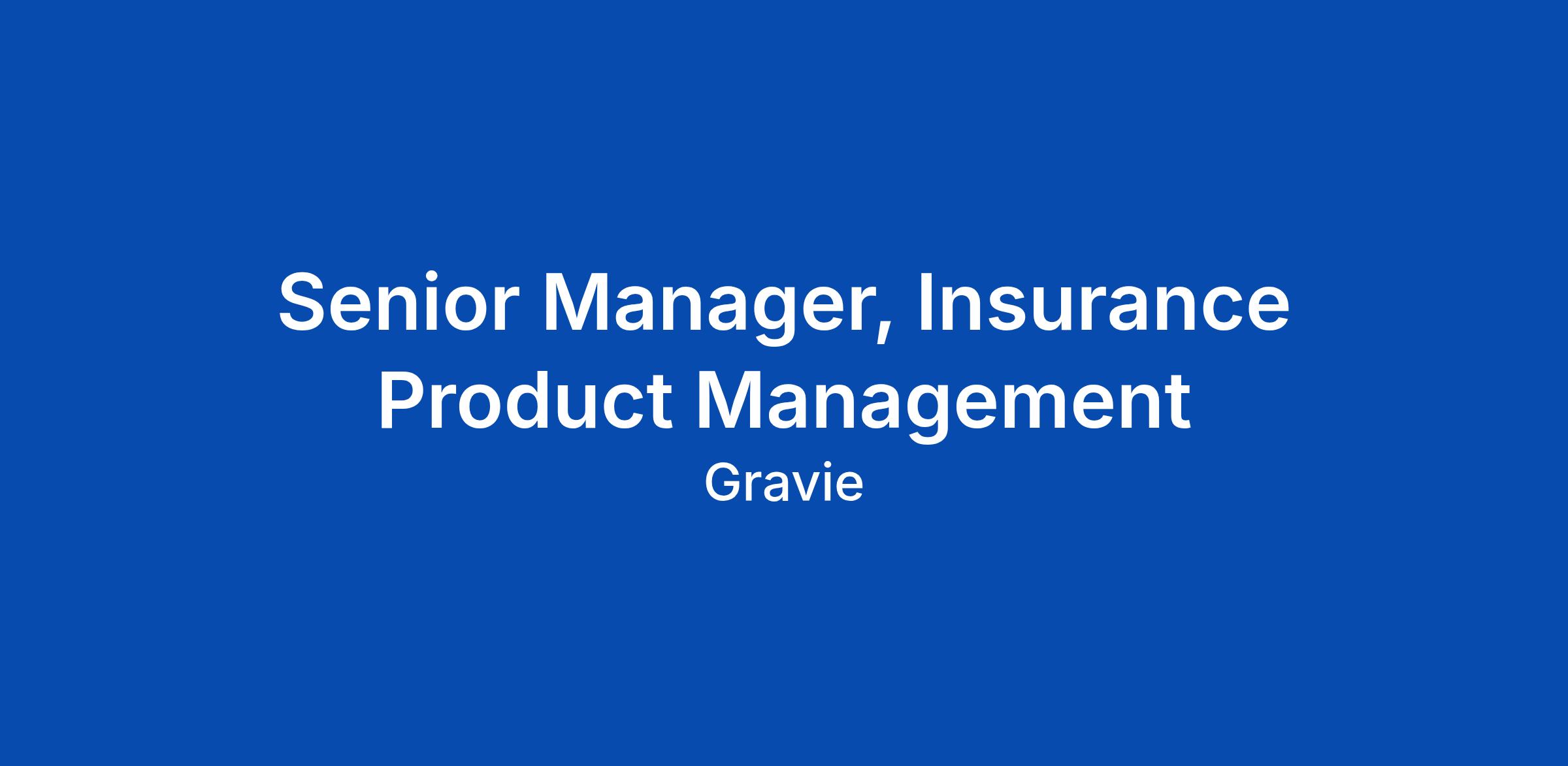 Gravie is looking for aΒ Senior Manager, Insurance Product Management. You will be responsible for Gravieβs insurance plan portfolio end-to-end from strategy to development, go-to-...