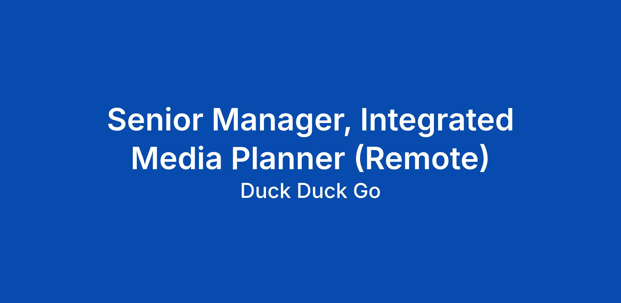 Senior Manager, Integrated Media Planner (Remote)