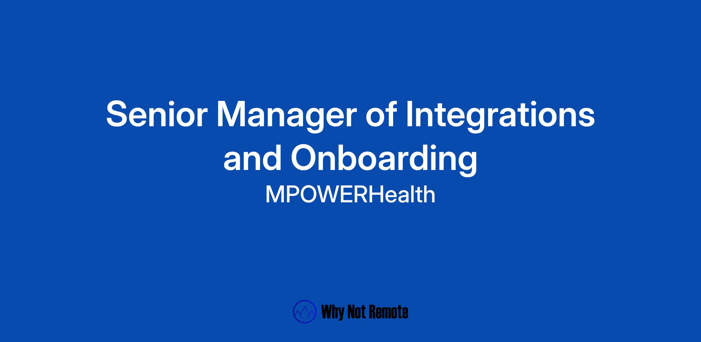 Senior Manager of Integrations and Onboarding