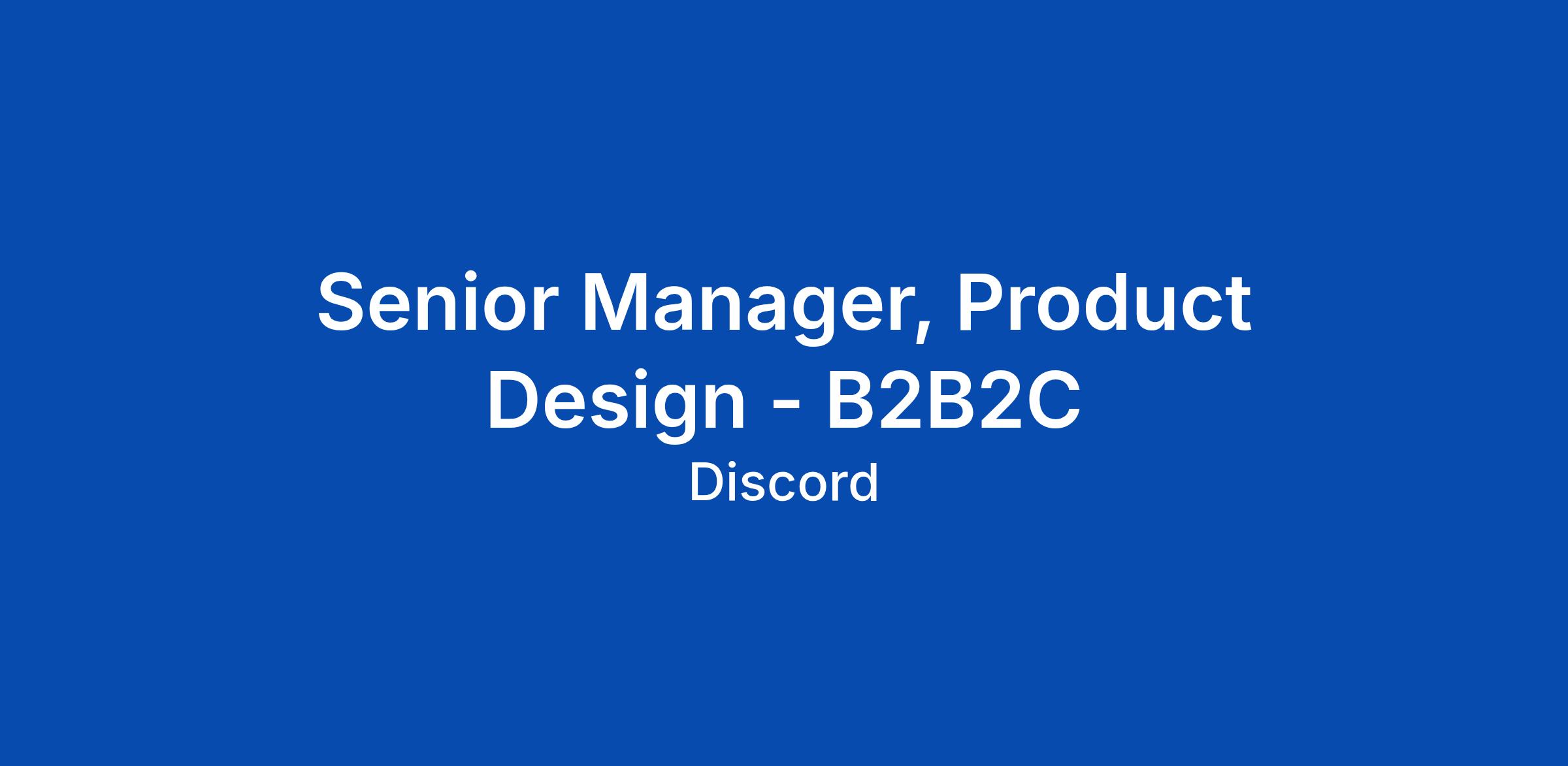 Senior Manager, Product Design - B2B2C