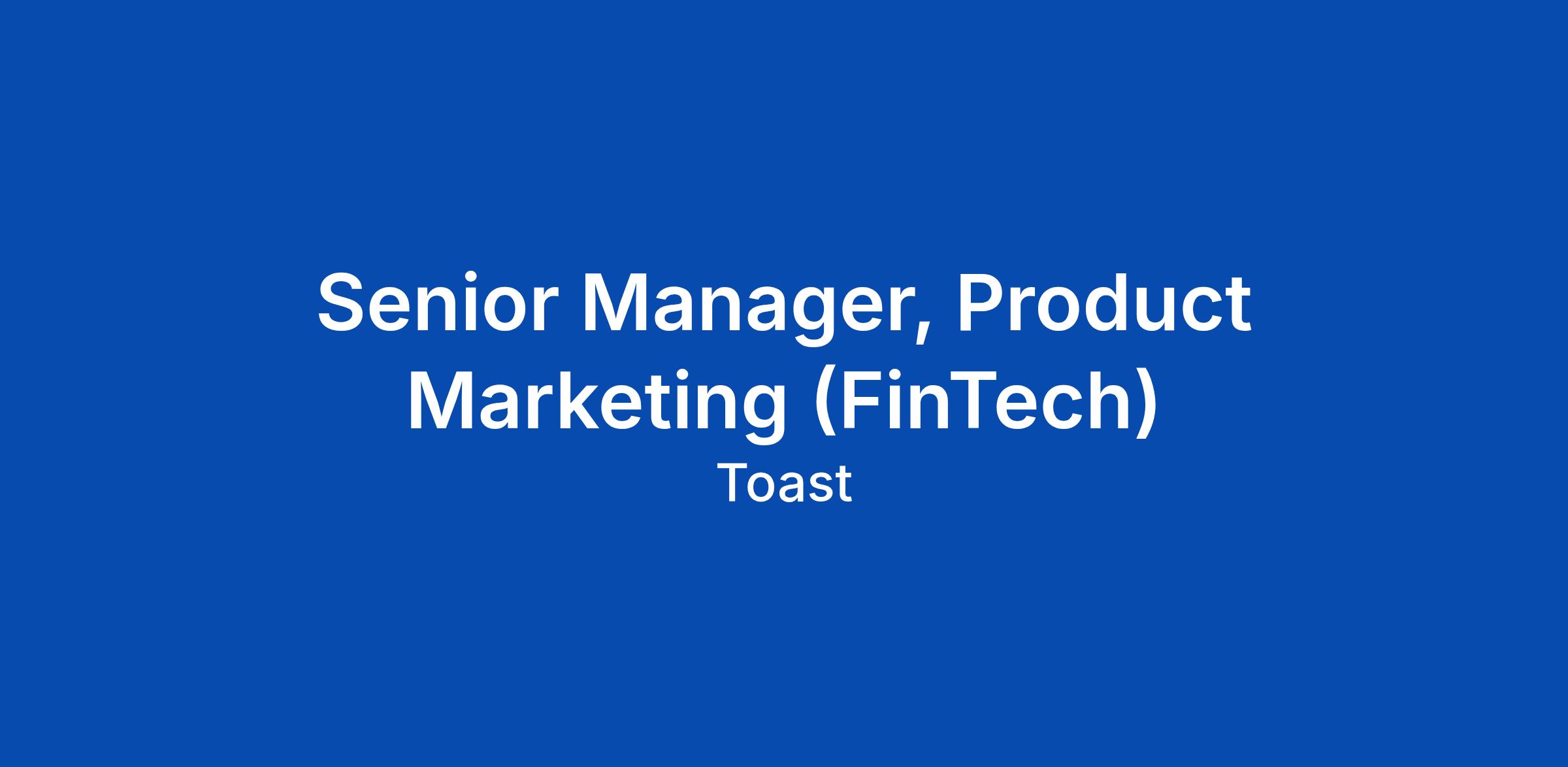 As Senior Manager, Product Marketing, you will define and evolve the product marketing strategy for Toast Payment Processing and our FinTech products in partnership with Product and Marketing leadership. You will operate as a senior, trusted partner to Product, Sales, Marketing, and Customer Success leaders, leading complex go-to-market efforts across a multi-product platform with multiple buyer personas and sales motions.