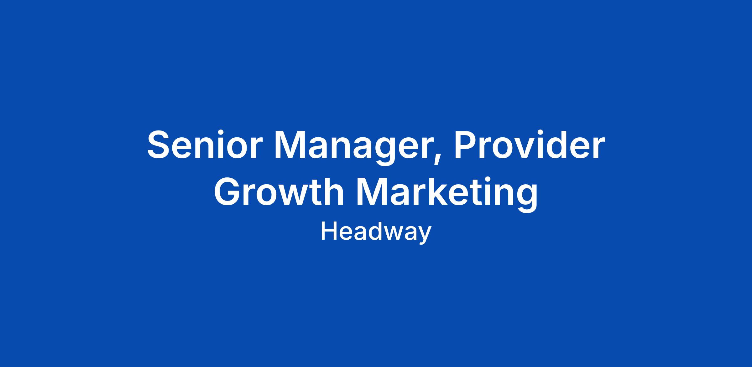 Senior Manager, Provider Growth Marketing