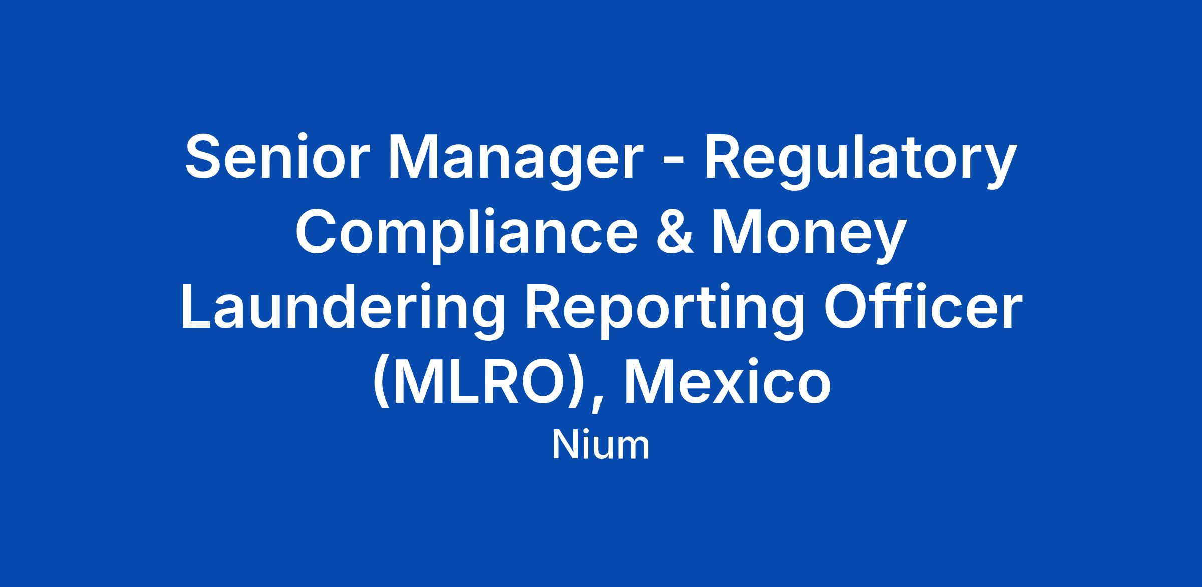 Senior Manager - Regulatory Compliance & Money Laundering Reporting Officer (MLRO), Mexico
