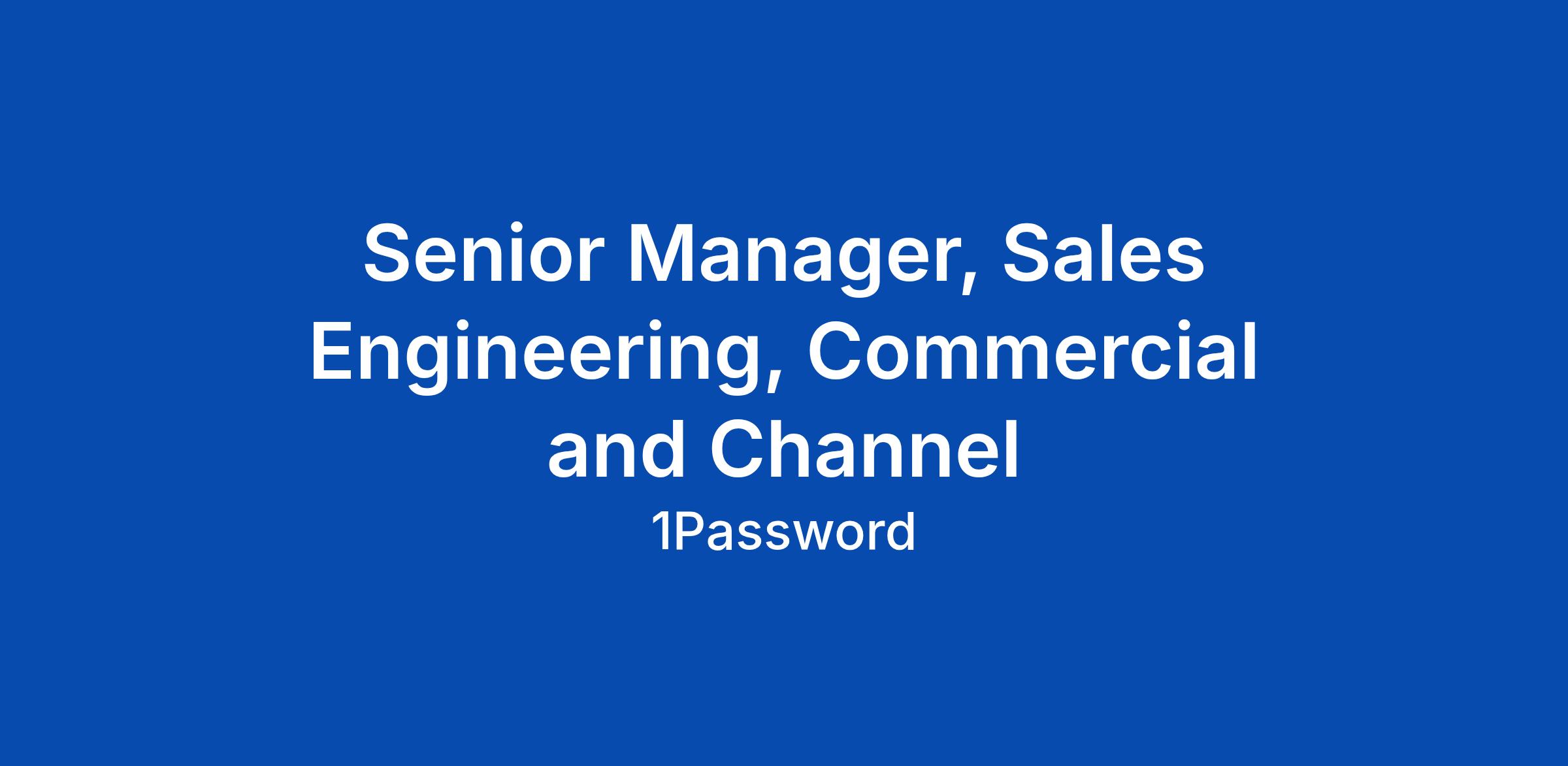 Senior Manager, Sales Engineering, Commercial and Channel