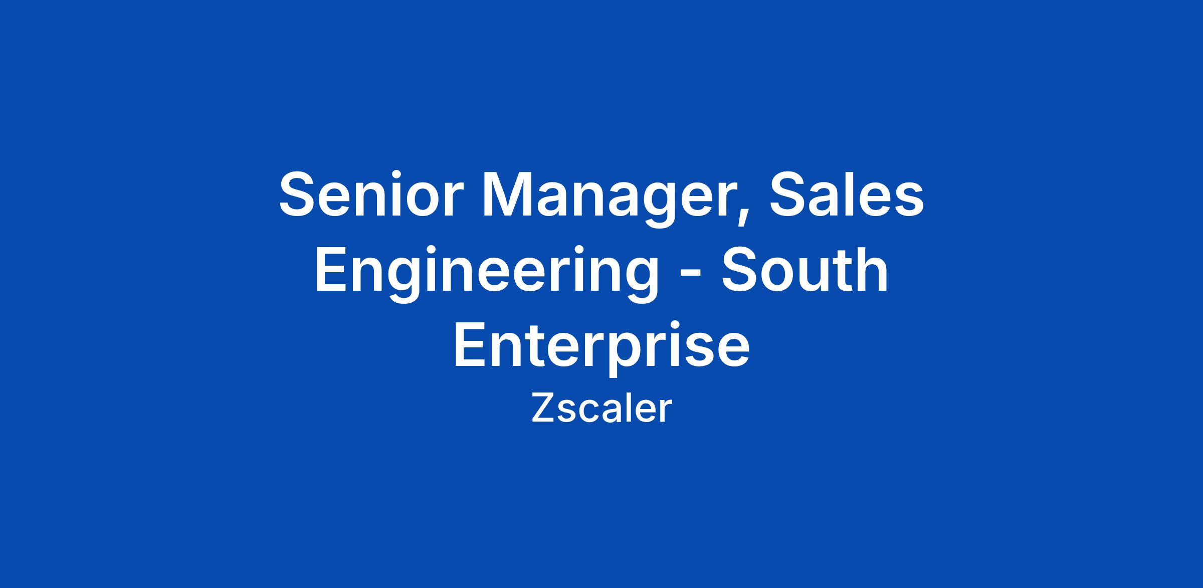 Senior Manager, Sales Engineering - South Enterprise