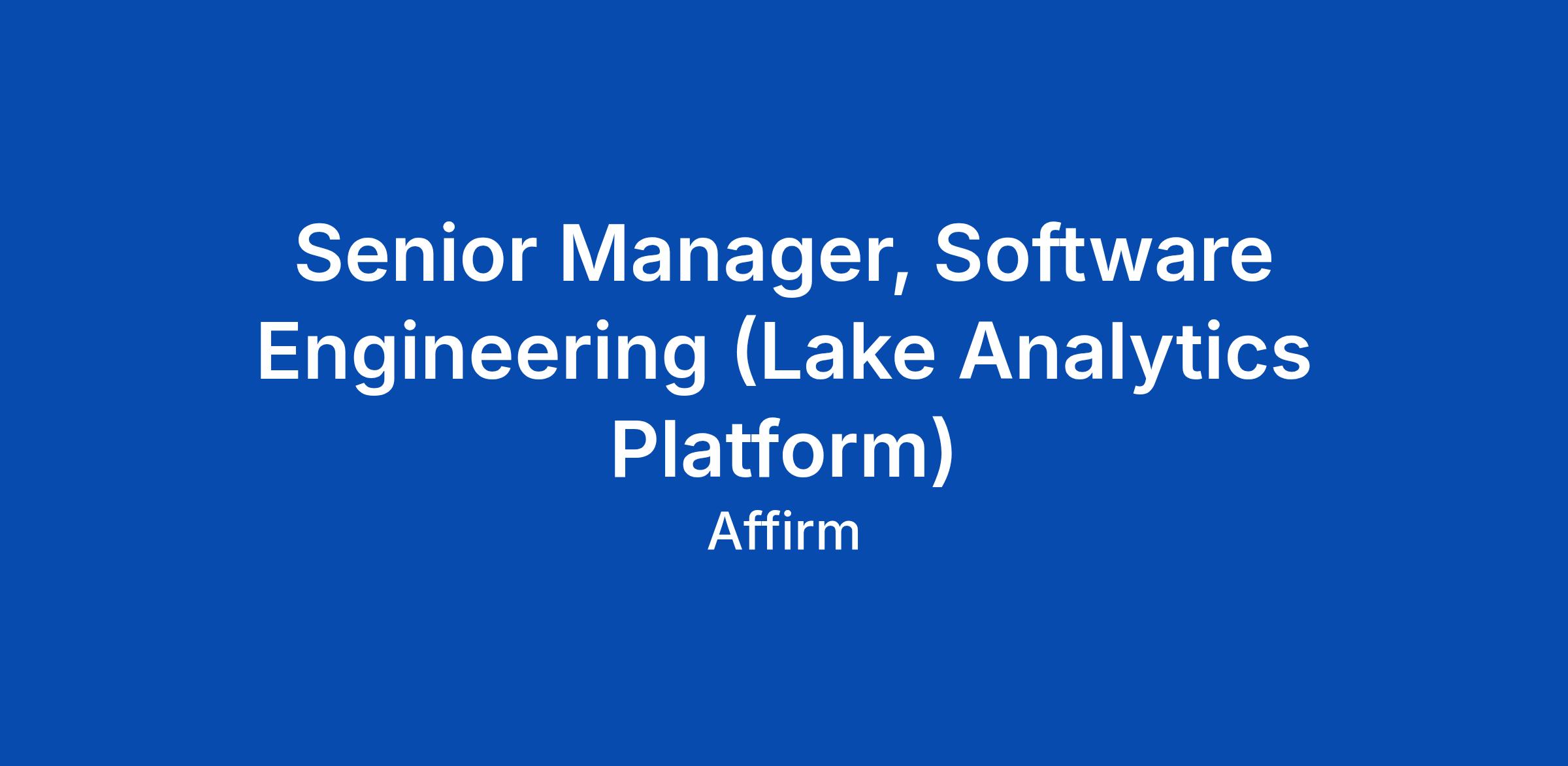 Senior Manager, Software Engineering (Lake Analytics Platform)