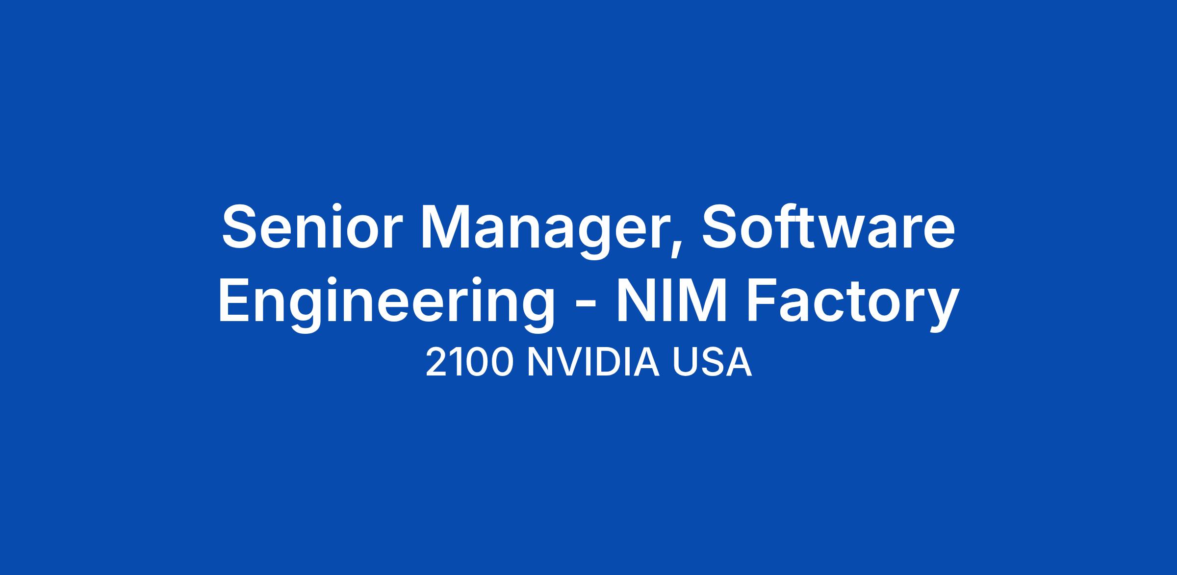 NVIDIA is the platform upon which every new AI‑powered application is built! We are seeking a deeply technical, hands‑on Senior Engineering Manager to lead the NVIDIA Inference Microservices (NIM) Factory team. You will lead and scale a world‑class engineering organization that delivers day‑0 model launches and follows through with enterprise‑grade software—to delight customers with reliable, performant, and secure AI services at massive scale. You will partner closely with product, research, SRE, and security to define strategy, drive execution across multiple workstreams, and safeguard the long‑term technical health of the platform.