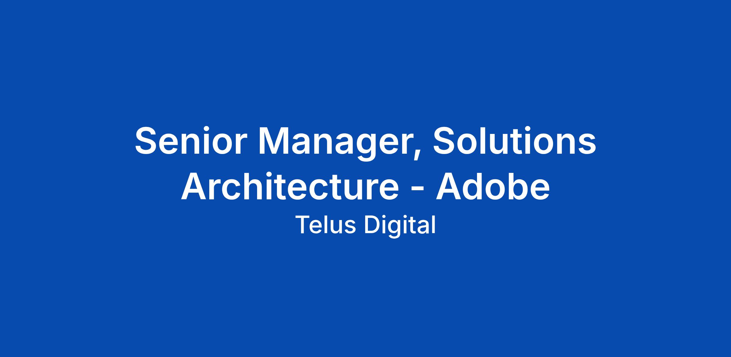 Senior Manager, Solutions Architecture - Adobe
