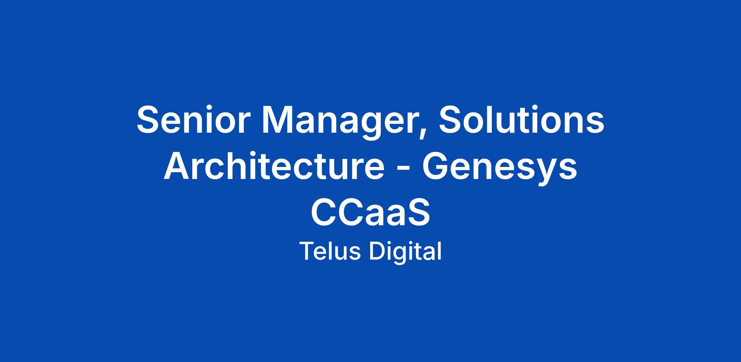 Senior Manager, Solutions Architecture - Genesys CCaaS