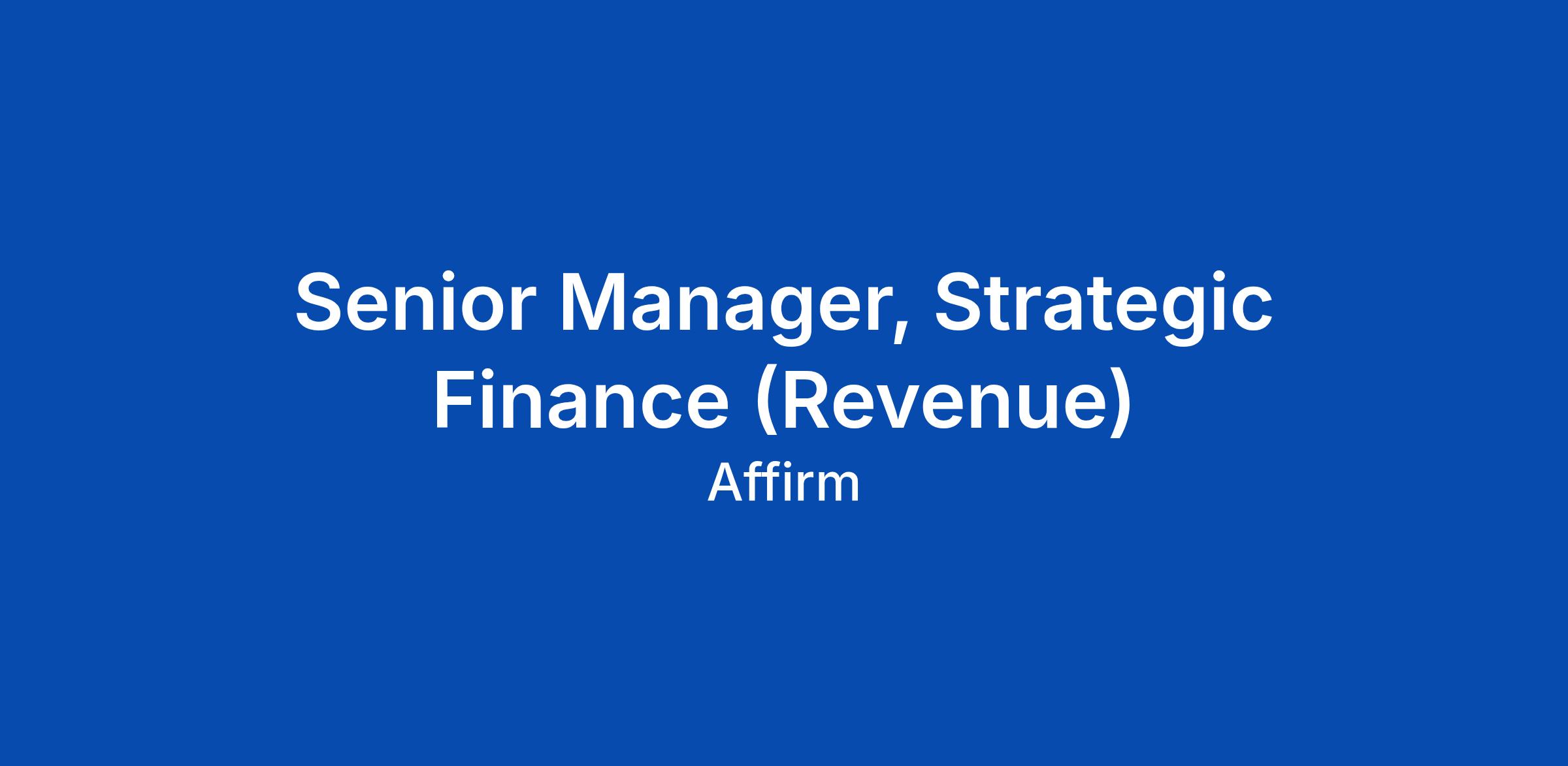 Senior Manager, Strategic Finance (Revenue)