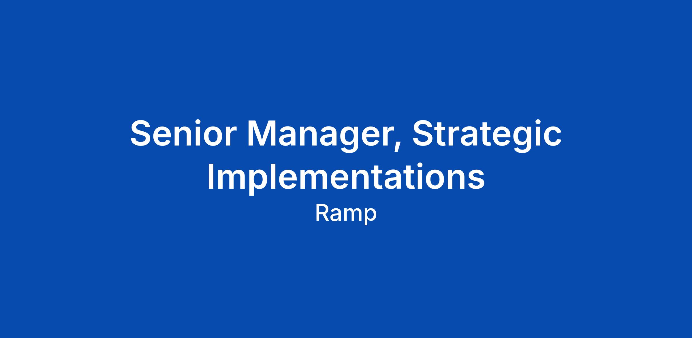Senior Manager, Strategic Implementations
