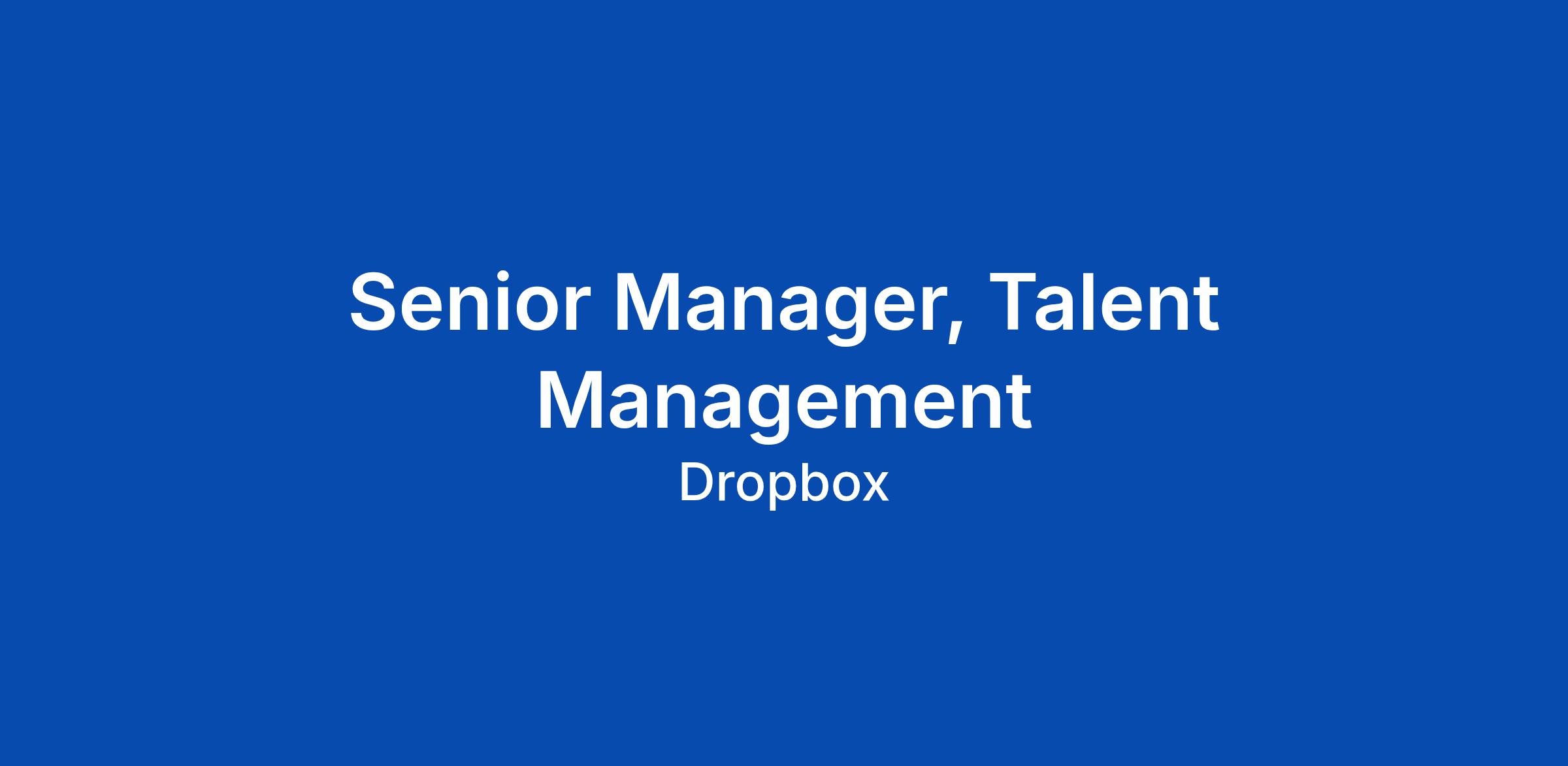 Senior Manager, Talent Management