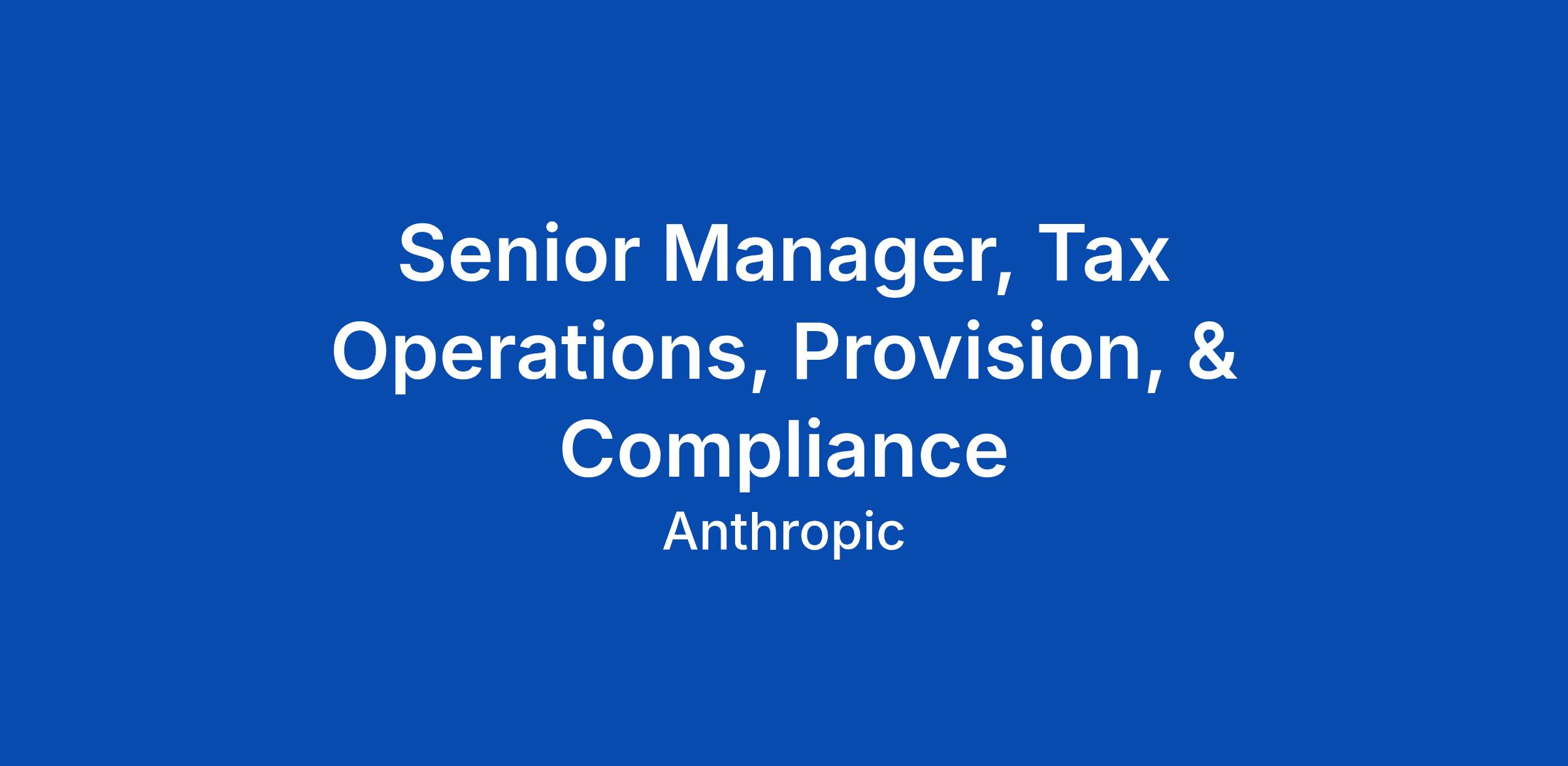 Senior Manager, Tax Operations, Provision, & Compliance