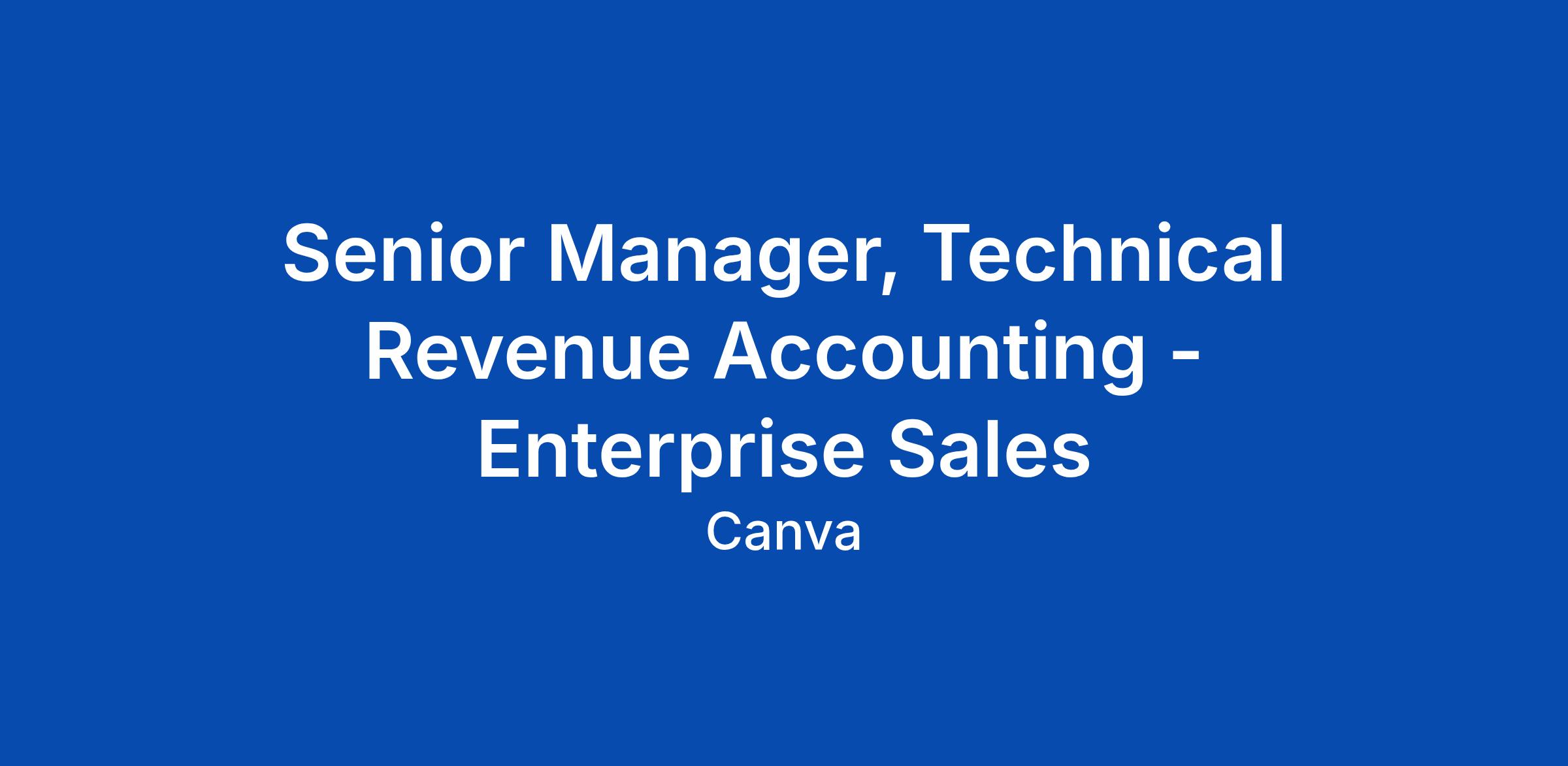 Senior Manager, Technical Revenue Accounting - Enterprise Sales