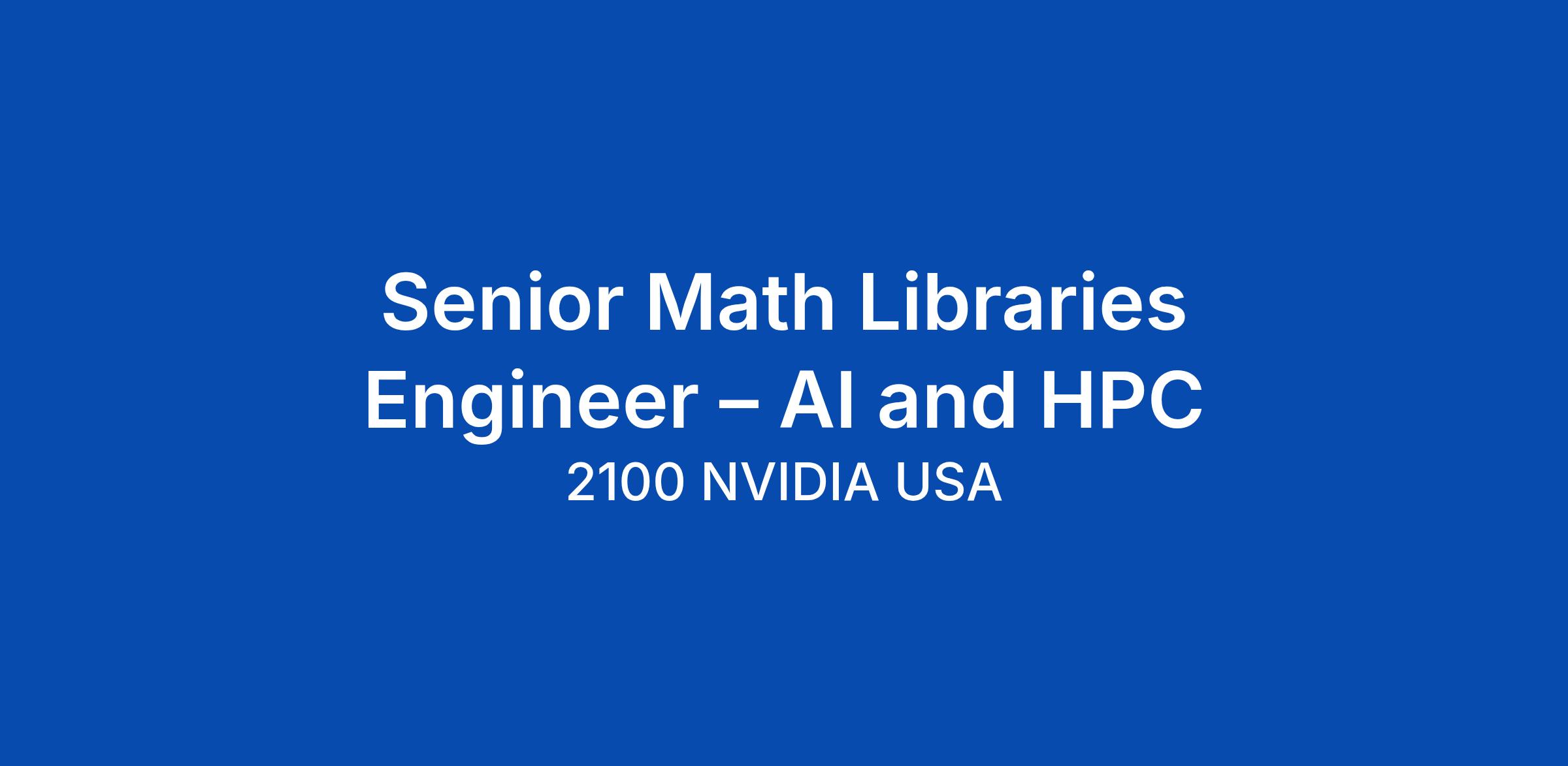 NVIDIA Math Libraries team is looking for a senior engineer to join our development efforts in the area of kernel generation for AI and HPC, specifically targeting matrix operations, JITing and fusions. Around the world, leading commercial and academic organizations are revolutionizing AI, scientific and engineering simulations, and data analytics, using data centers powered by GPUs. Applications of these technologies are in healthcare, NLP, VR, deep learning, autonomous vehicles and countless others. Did you know our team develops the GPU accelerated mathematical libraries that makes all of this possible?