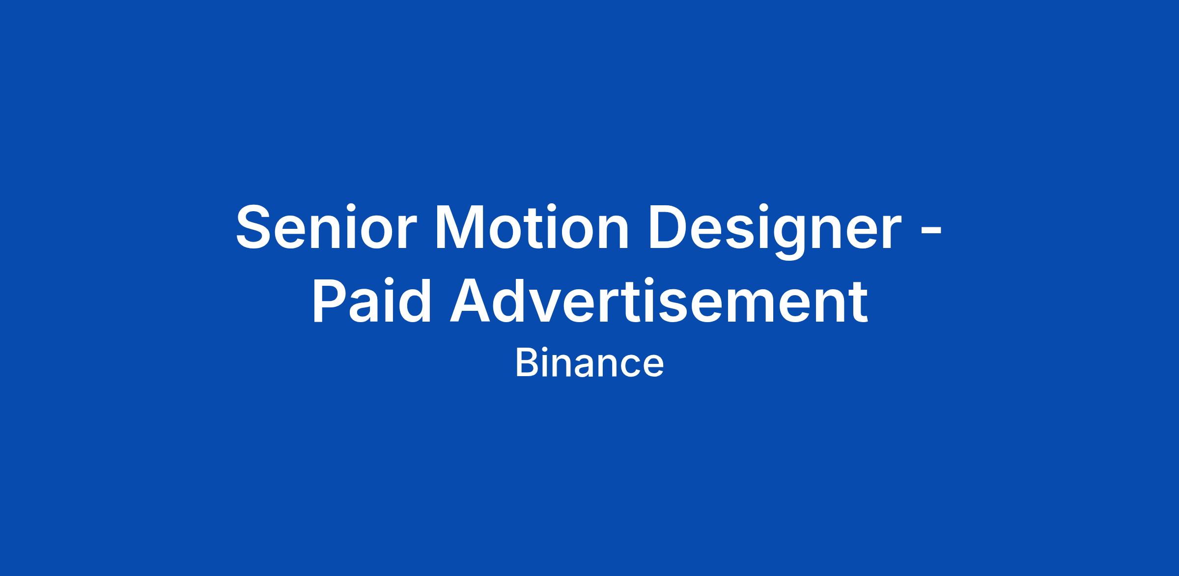Senior Motion Designer - Paid Advertisement