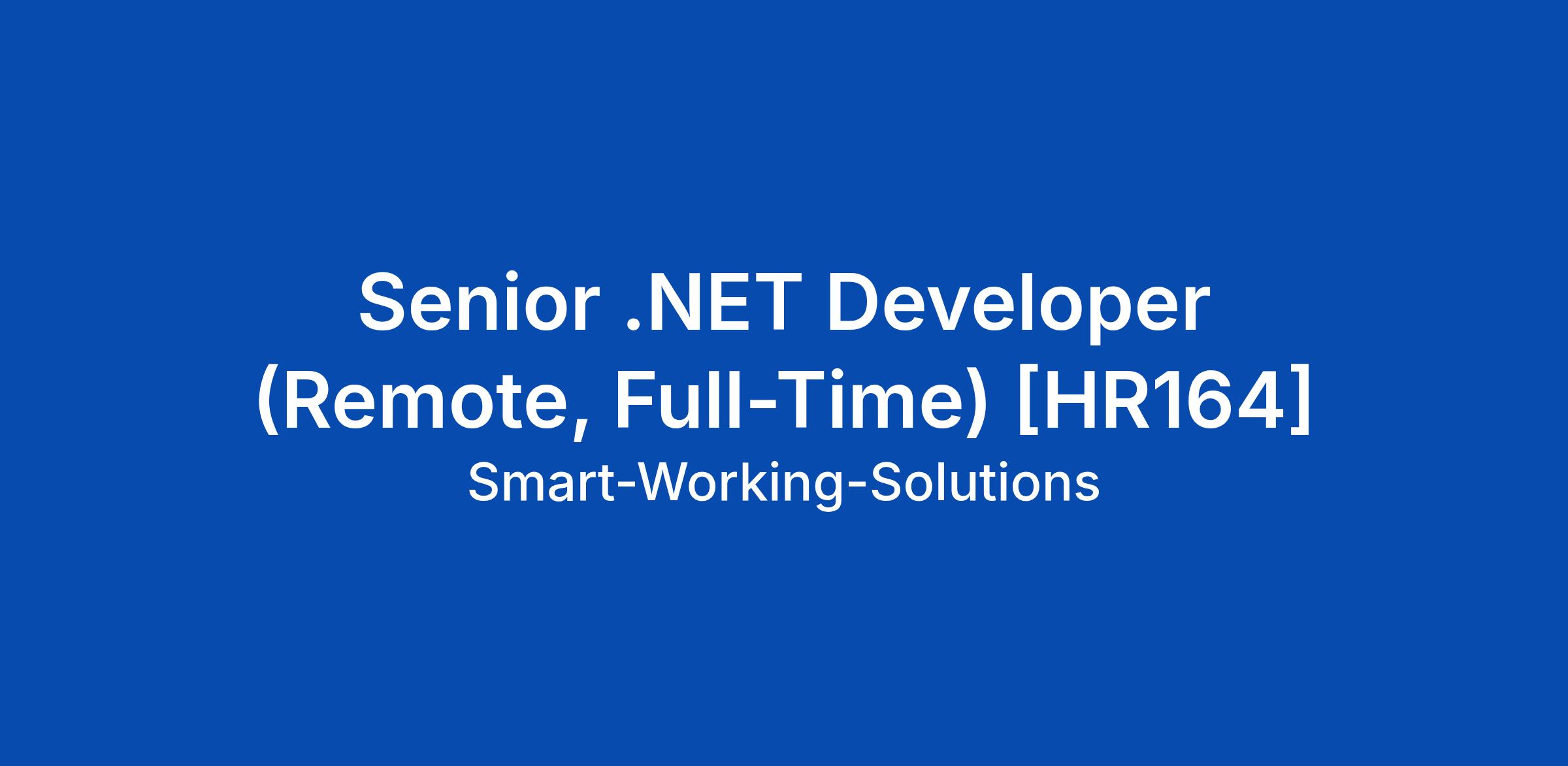 Senior .NET Developer (Remote, Full-Time) [HR164]