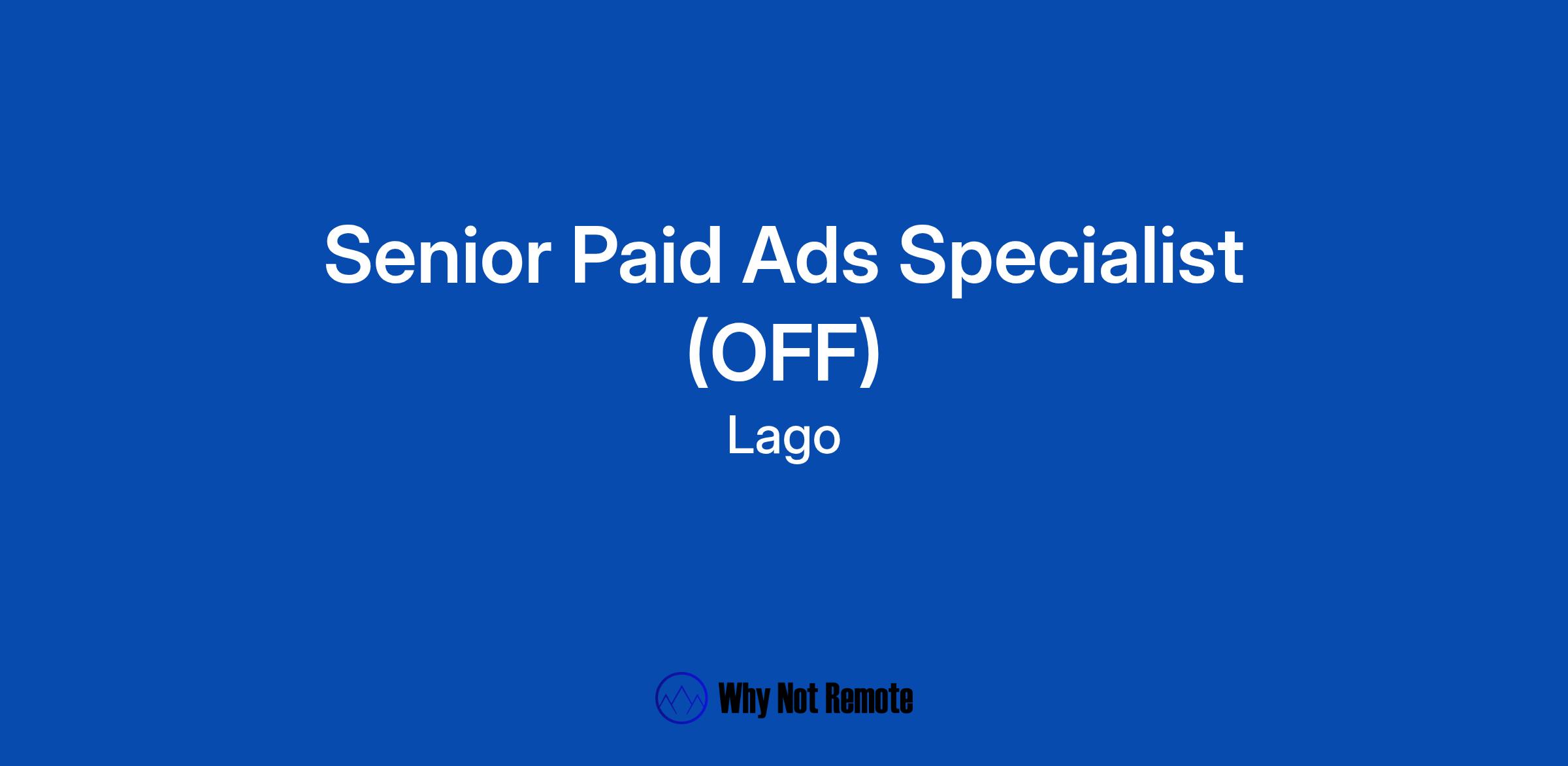 DescriptionJob Title: Senior Paid Ads Specialist
