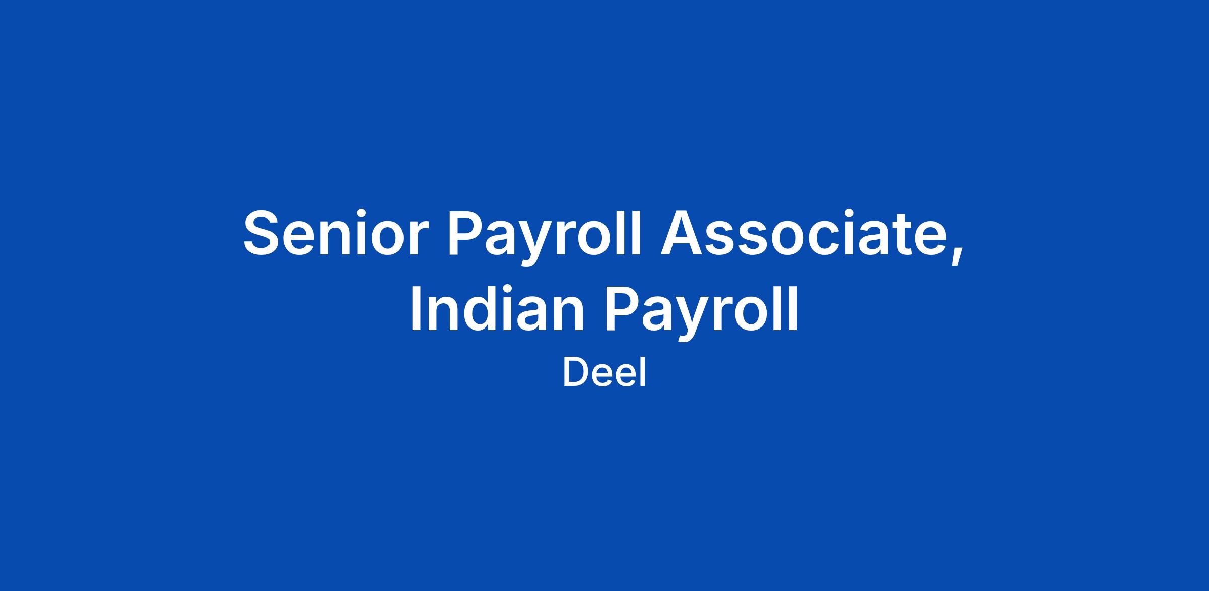 Senior Payroll Associate, Indian Payroll