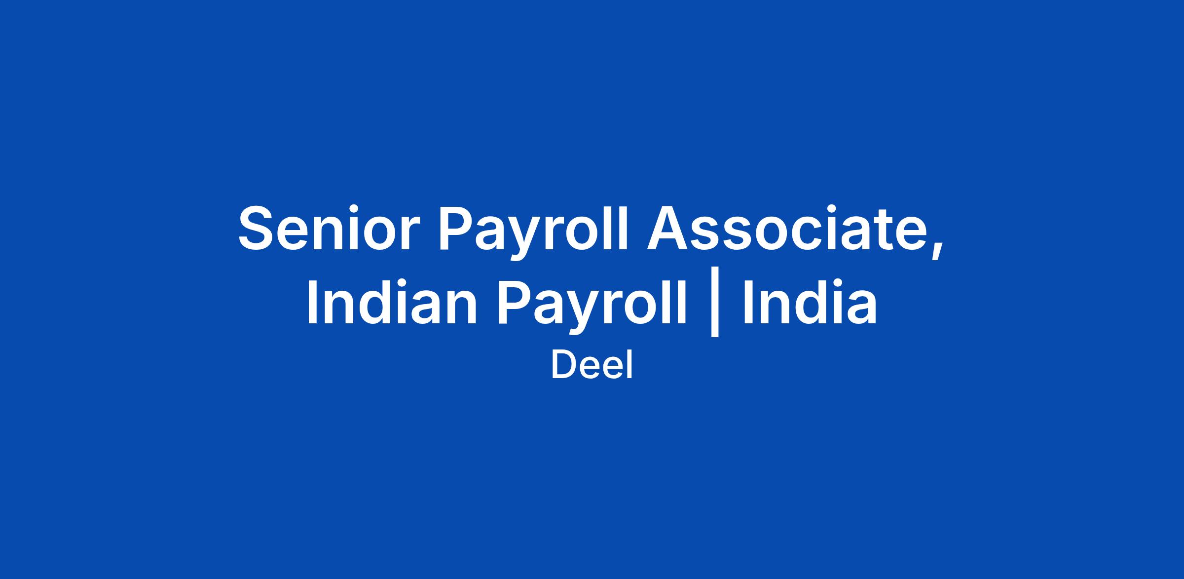 Senior Payroll Associate, Indian Payroll | India