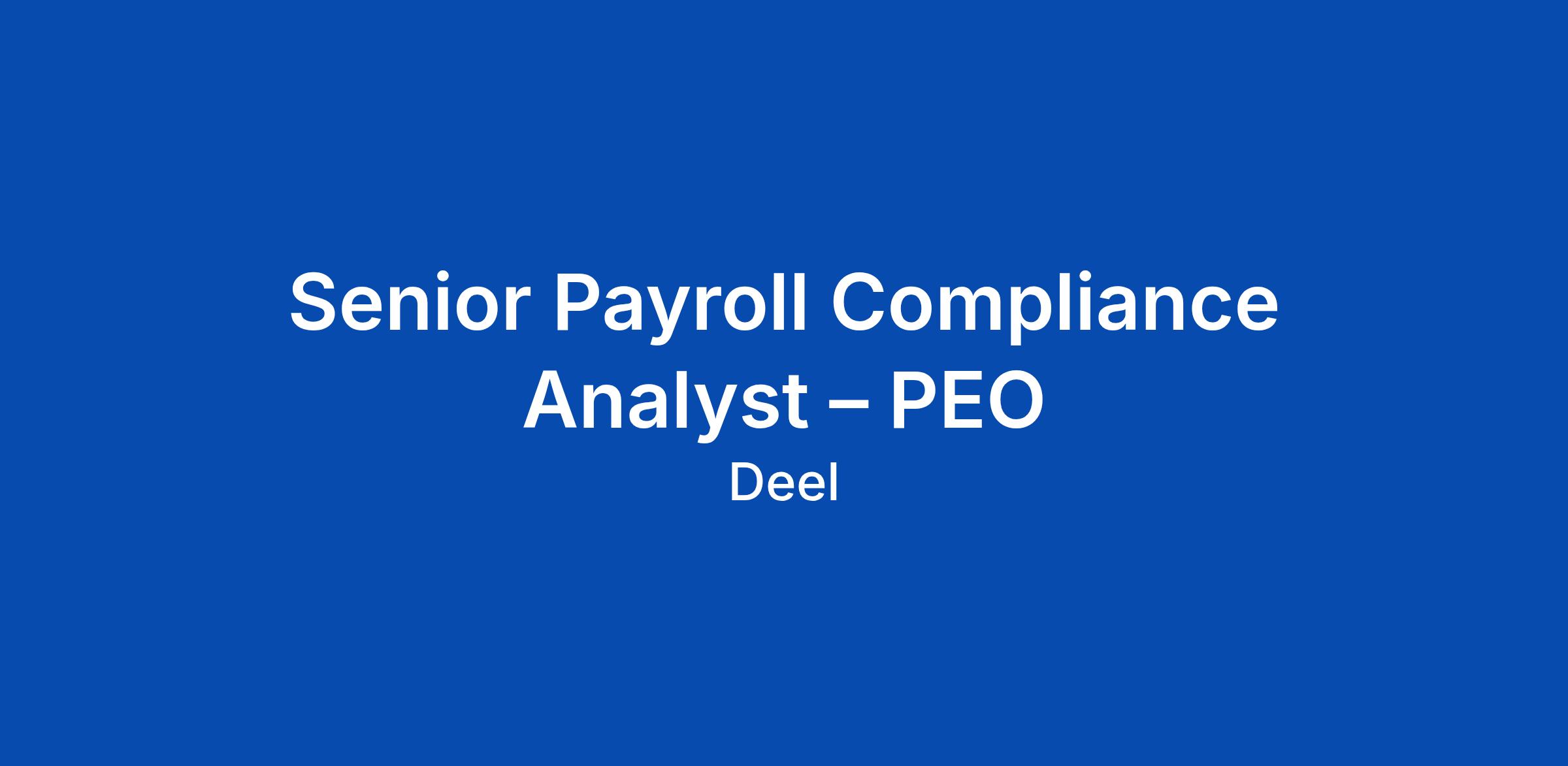 Senior Payroll Compliance Analyst – PEO