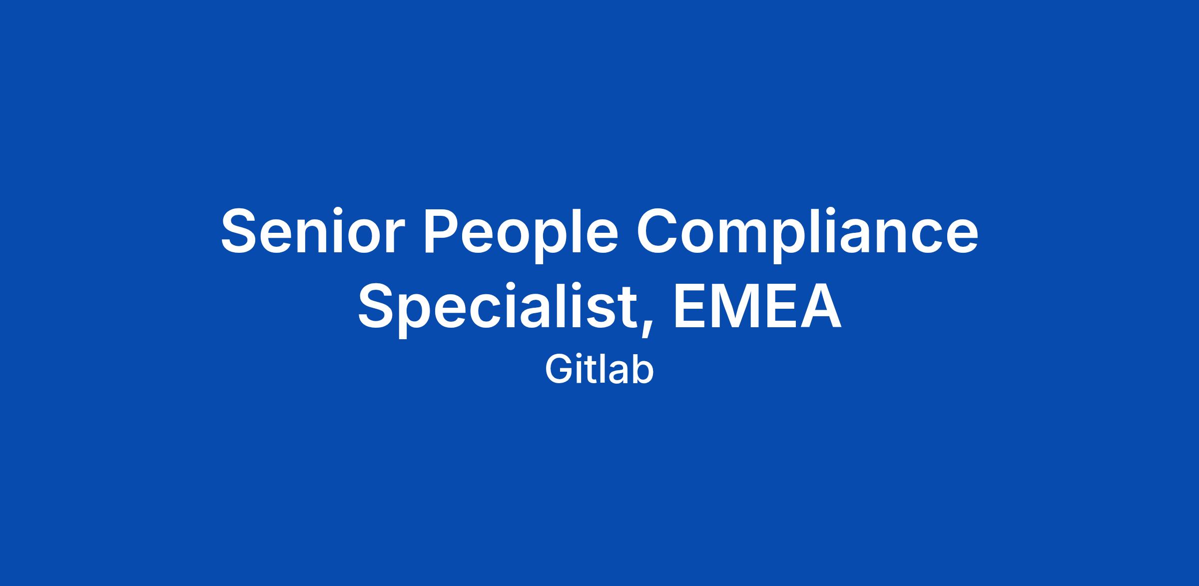 Senior People Compliance Specialist, EMEA