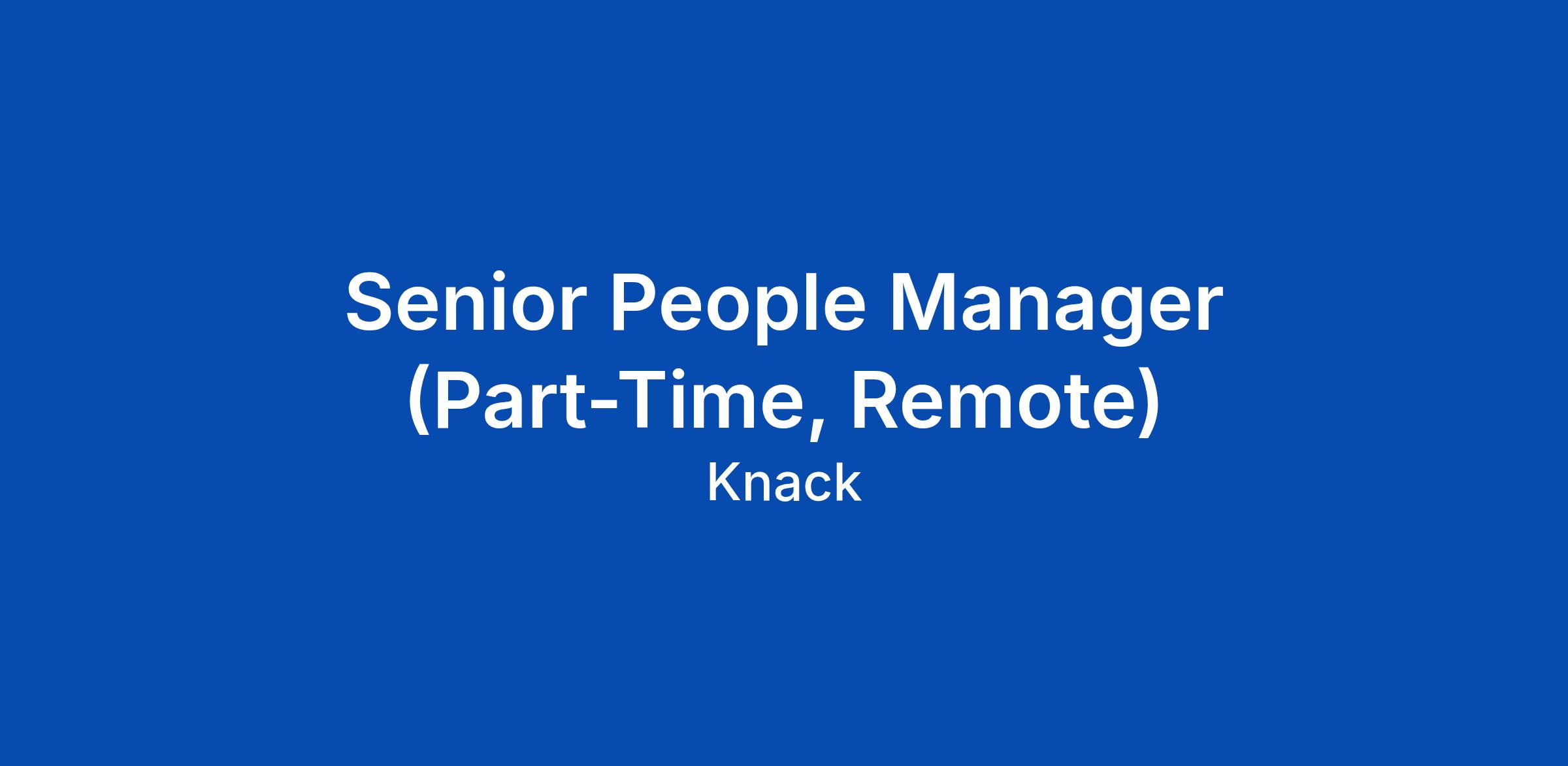 Senior People Manager (Part-Time, Remote)