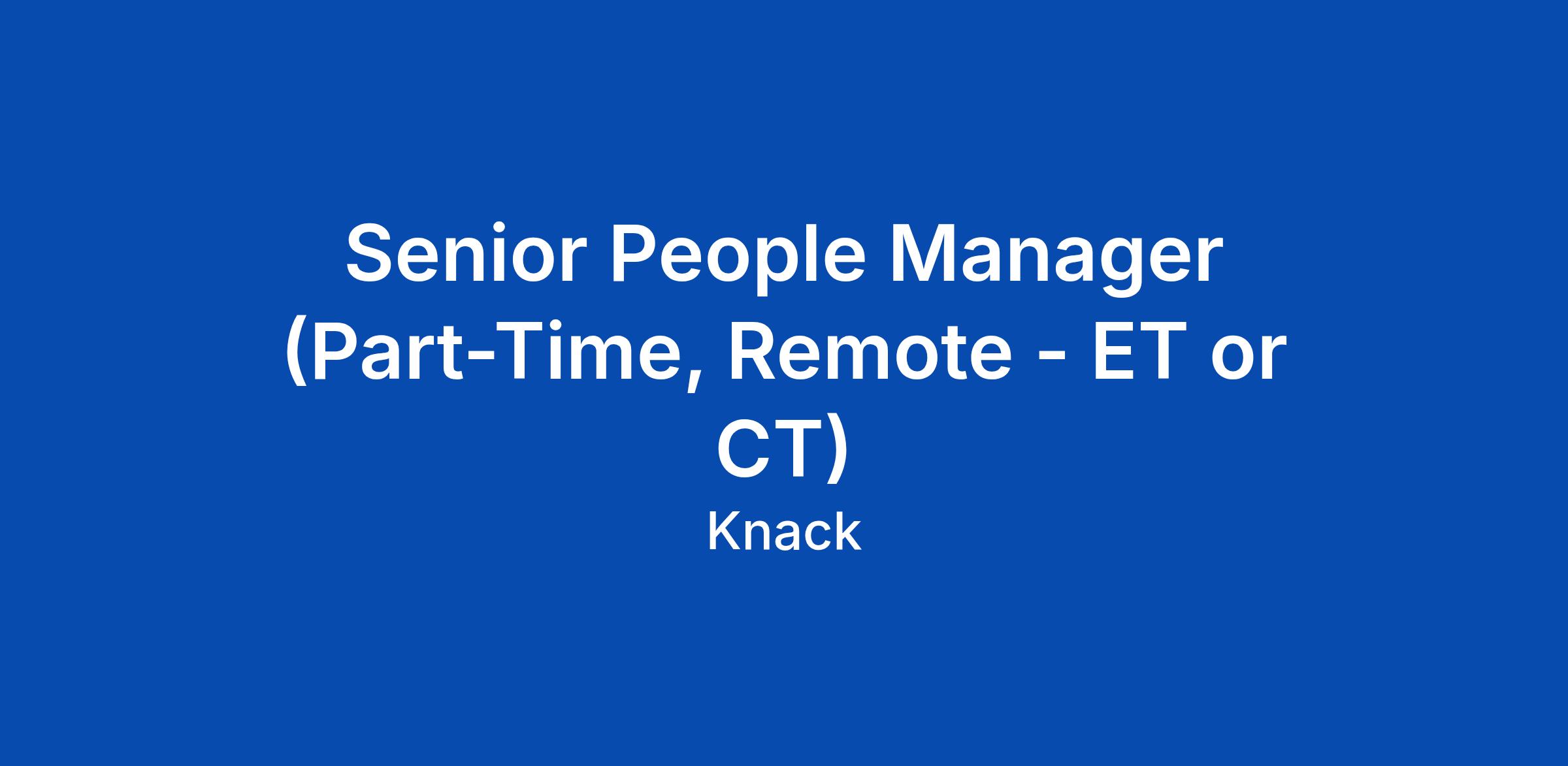 Senior People Manager (Part-Time, Remote - ET or CT)