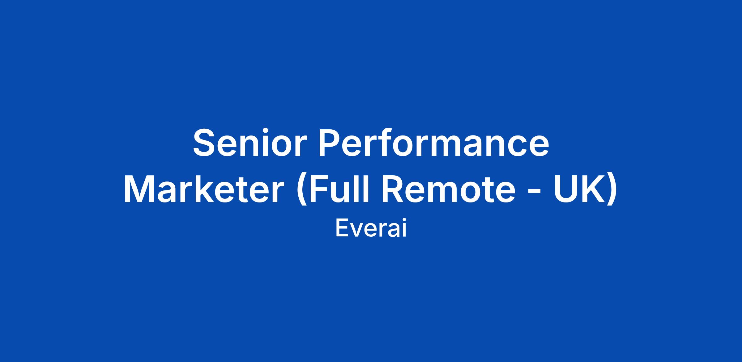 Senior Performance Marketer (Full Remote - UK)
