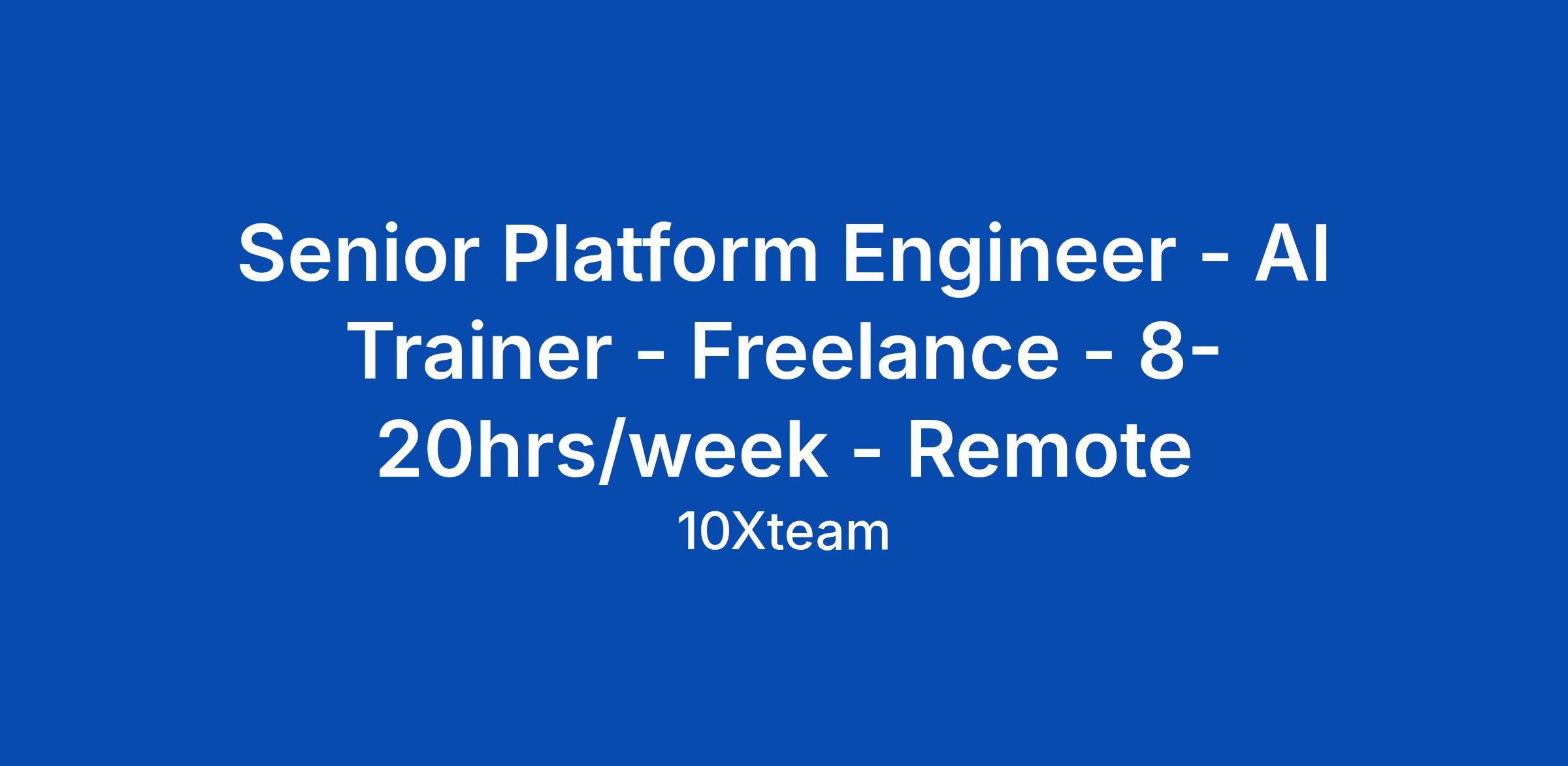 Updated: 16 April 2026 Freelance | 8β20 hrs/week | Remote (EU/UK) Are you an experienced platform engineer who instinctsively spots gaps in technical reasoning and understands the complex realities of platform engineering? Do you have 8 to 20 hours per week available alongside your main job or consulting projects? Join us in shaping how AI understands and applies platform engineering expertise at scale. About the Role 10x.team connects expert freelancers with leading AI labs building next-generation models. We are looking for knowledgeable platform engineers based in the EU or UK to enhance the accuracy, depth, and real-world relevance of AI-powered engineering systems. What You Will Do - Review and refine AI-generated outputs related to platform engineering, system architecture, deployment workflows, and practical aspects of infrastructure management - Evaluate AI responses for technical accuracy, practicality, and compliance with real-world requirements - Draft realistic platform engineering scenarios based on your direct professional experience - Create scenario variations from different perspectives (e.g. platform engineer, developer, operations, or stakeholder) - Identify gaps