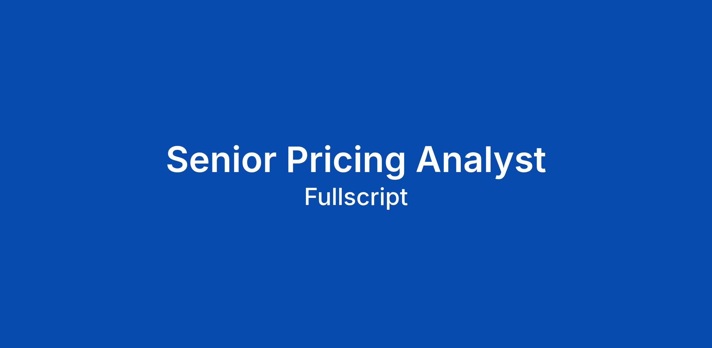 About Fullscript Weβre an industry-leading health technology company on a mission to help people get better. We started in 2011 with one simple idea. Make it easier for practitioners to access the products they trust so they can deliver better care. That simple idea grew into a platform that powers every part of care. Today, more than 125,000 practitioners use Fullscript for clinical insights, lab interpretations, patient analytics, education, and access to high-quality supplements. Over 10 million patients rely on Fullscript to stay connected to their care plans and follow through on treatment. We build tools that make care smarter and more human. Tools that save time, simplify decisions, and help practitioners stay closely connected to the people they care for. When everything they need is in one place, they can focus on what matters most: helping people get better. This is your invitation. Bring your ideas, your grit, and your care for people. Join us and shape the future of care. Weβre seeking a Pricing Analyst to join our Supplier team, reporting to the VP of Partner Management & Strategy. This role supports pricing strategy across product and laboratory partners, providing da