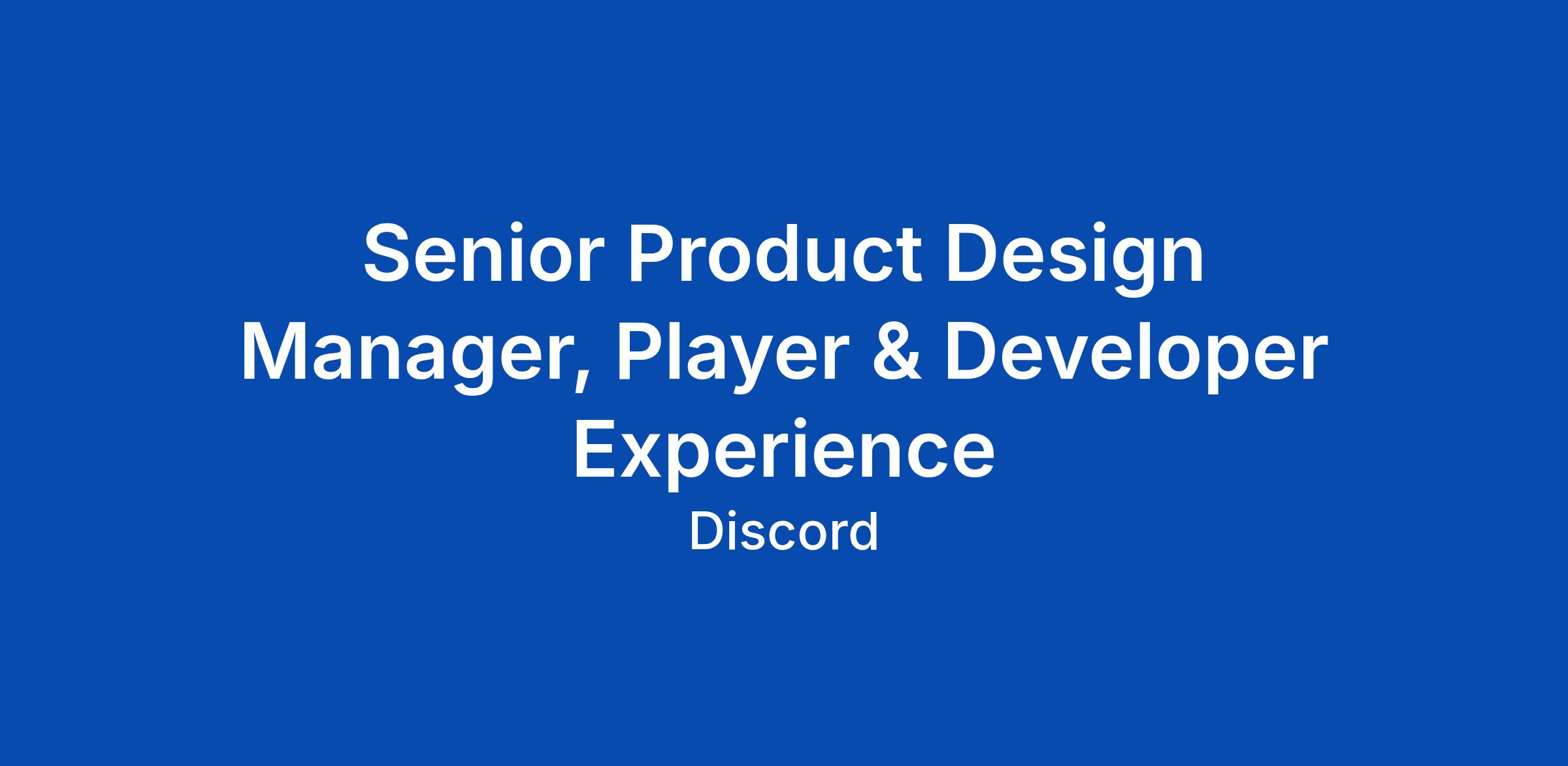 Senior Product Design Manager, Player & Developer Experience