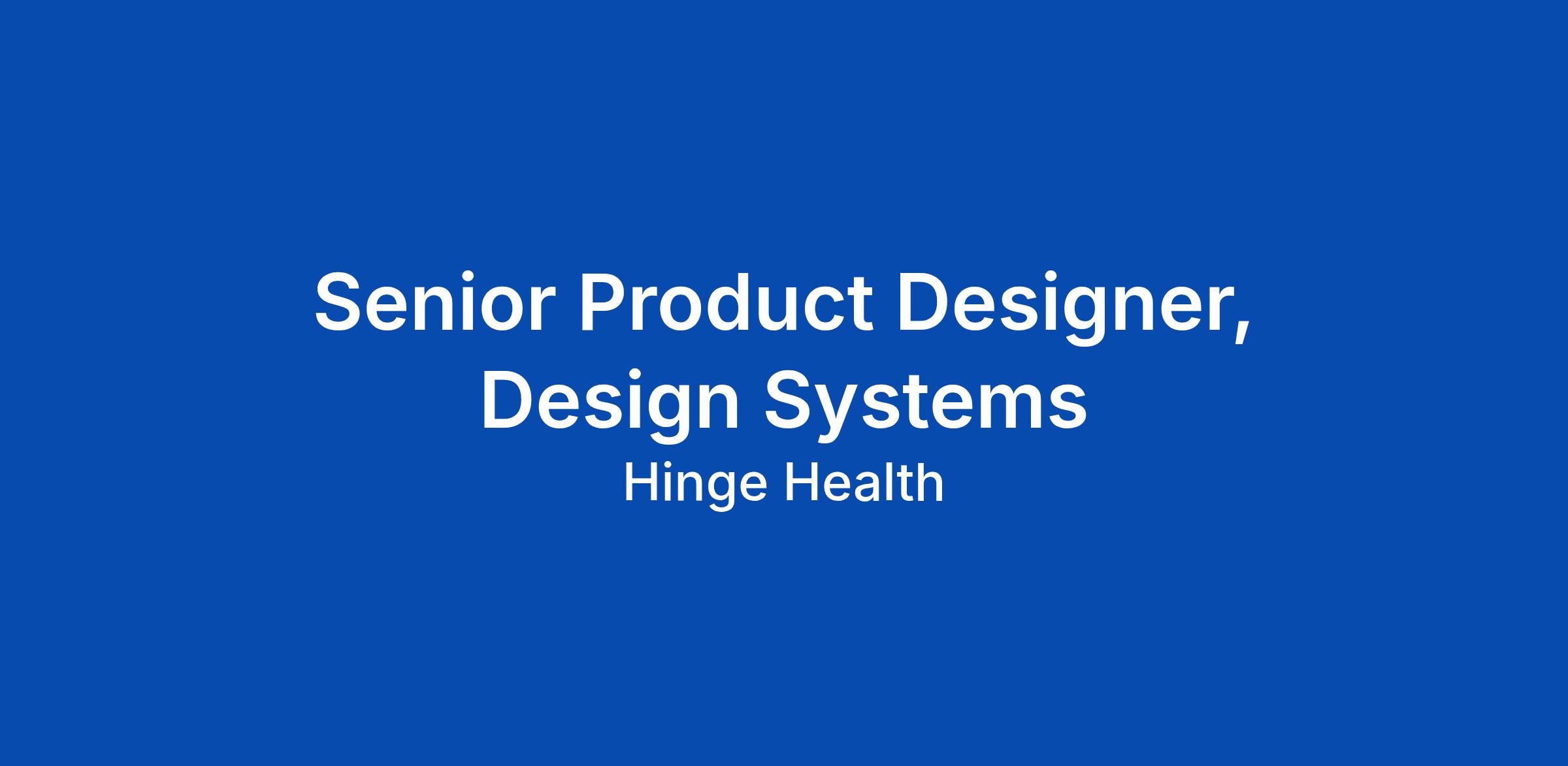 THE OPPORTUNITY Join the team transforming how millions of people manage their joint and muscle health. As a Senior Product Designer on our Design System team, you will shape the enterprise tooling that empowers our clinical and product teams to deliver cohesive, intuitive, and accessible experiences at scale. You won't just build components; you will build the engine that powers our product development, ensuring every interaction our members have is consistent, accessible, and meaningful. WHAT YOU'LL ACCOMPLISH - In your first 3 months: You will audit our current component library and build trust with your engineering partners. You will ship your first set of refined components and documentation, ensuring they meet our strict accessibility and performance standards. - In your first 6 months: You will lead the definition and rollout of a complex new pattern or component set, working across multiple product pods to ensure adoption. You will refine our governance process, making it easier for teams to propose and contribute changes. - In your first year: You will act as a core guardian of the Hinge Health visual language, evolving our design tokens and system architecture to support