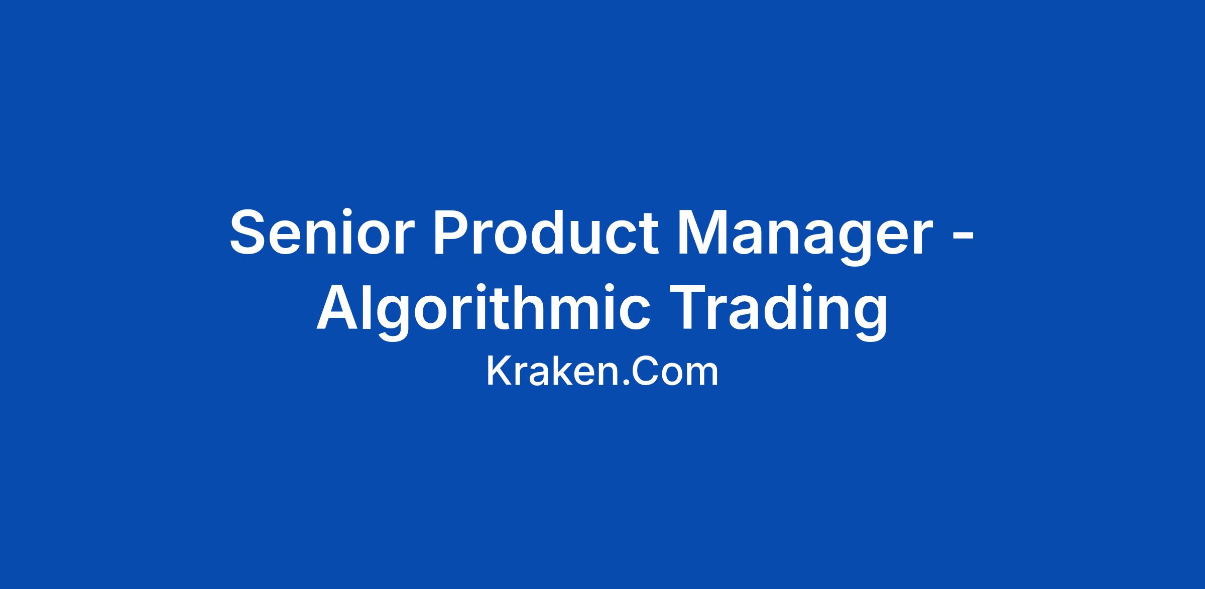 Senior Product Manager - Algorithmic Trading