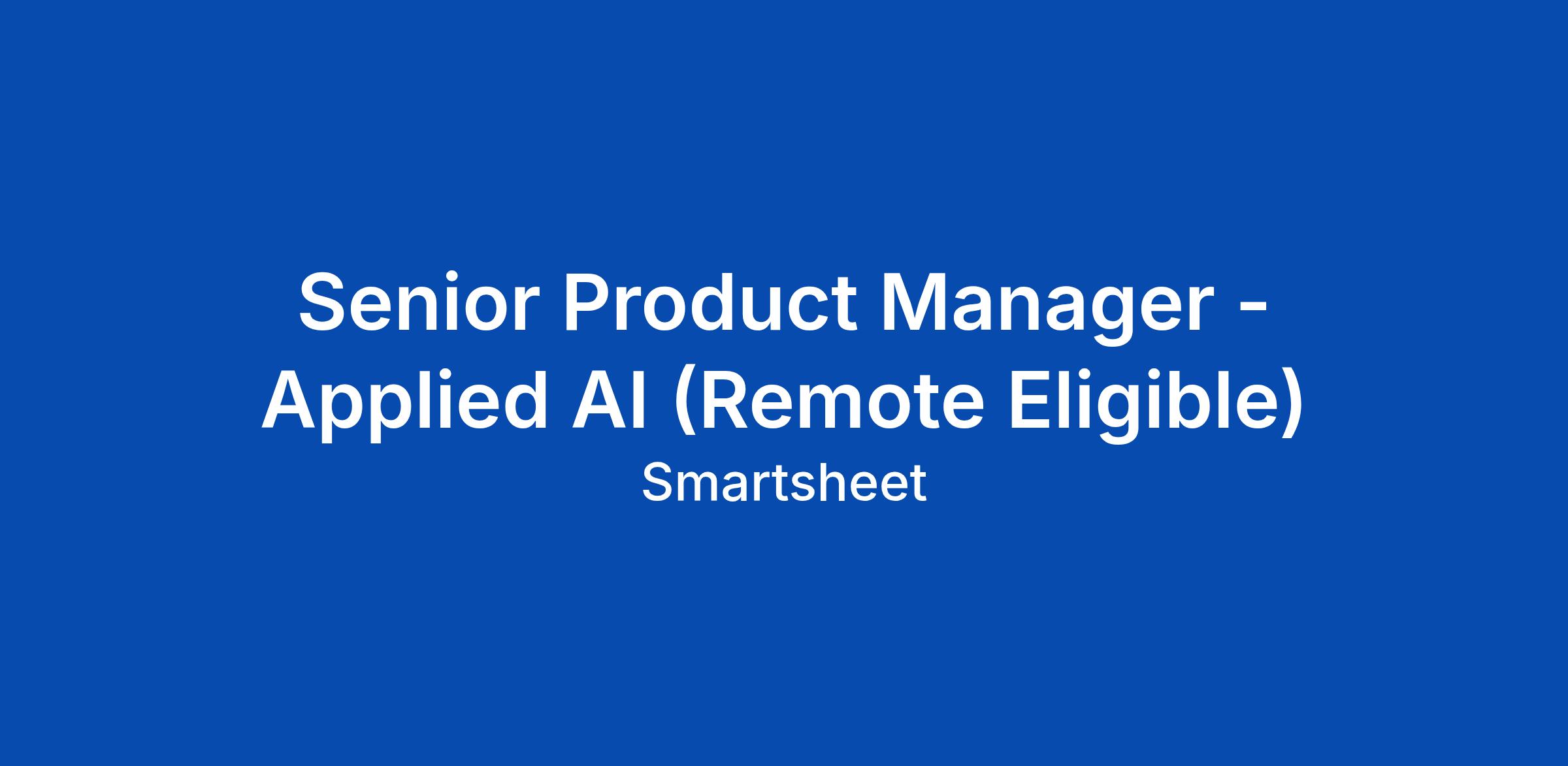 We are looking for a Senior Product Manager to join our Applied AI organization at Smartsheet. You'll own the roadmap for specialized AI agents and evaluation infrastructure, ship complex agent capabilities end-to-end, and define the standards that enable teams across the company to build agents successfully.