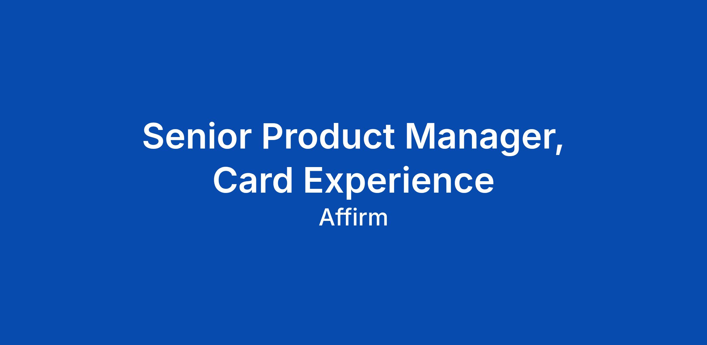 Senior Product Manager, Card Experience