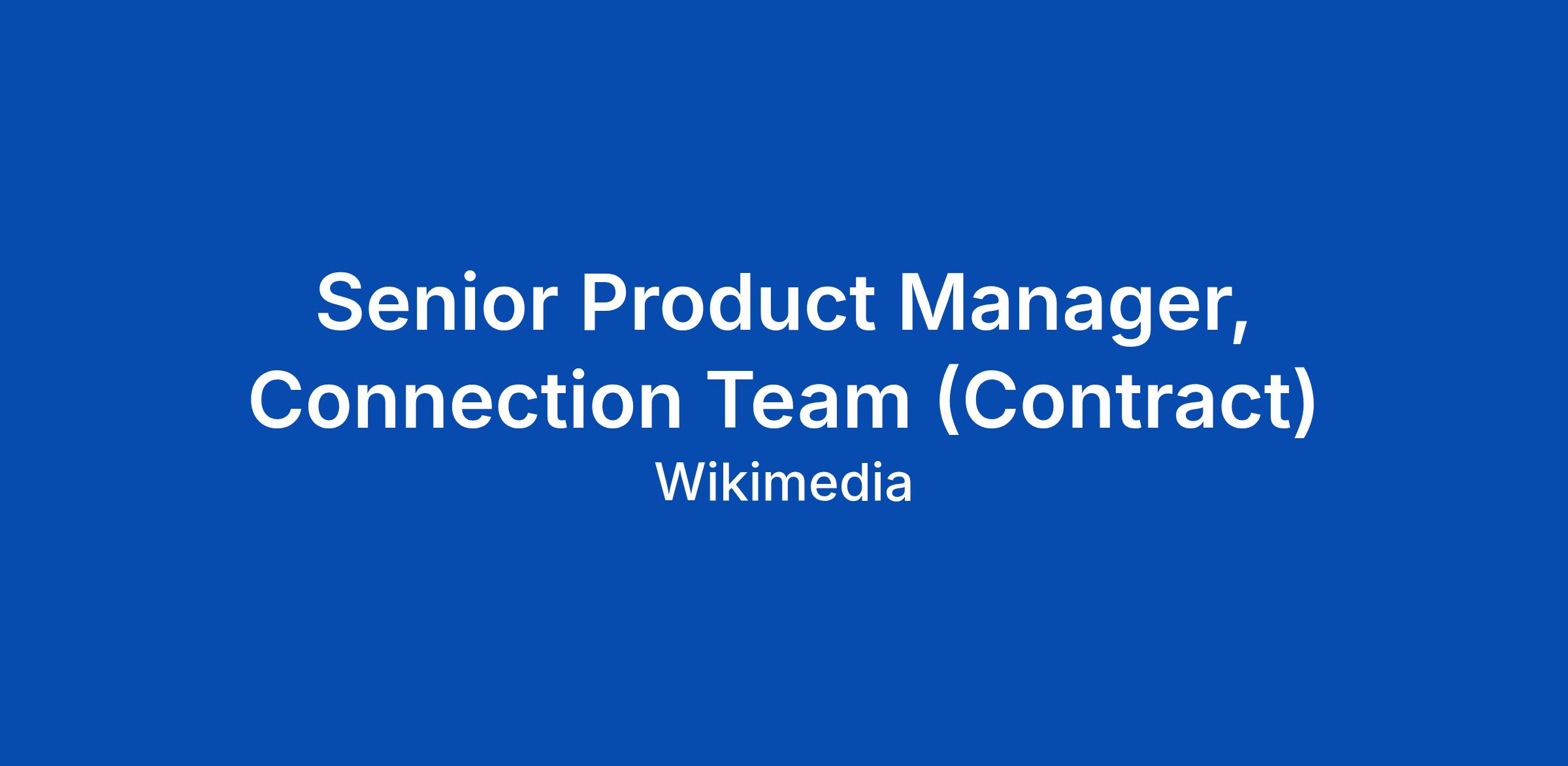 Wikimedia is looking for an experienced product manager (contract) for the Connection team in our Product department to cover for a parental leave. The Product department builds the wiki experiences that enable our communities to achieve our vision: a world in which every single human being can freely share in the sum of all knowledge. This is an opportunity to have a tremendous impact with one of the most beloved parts of the internet.