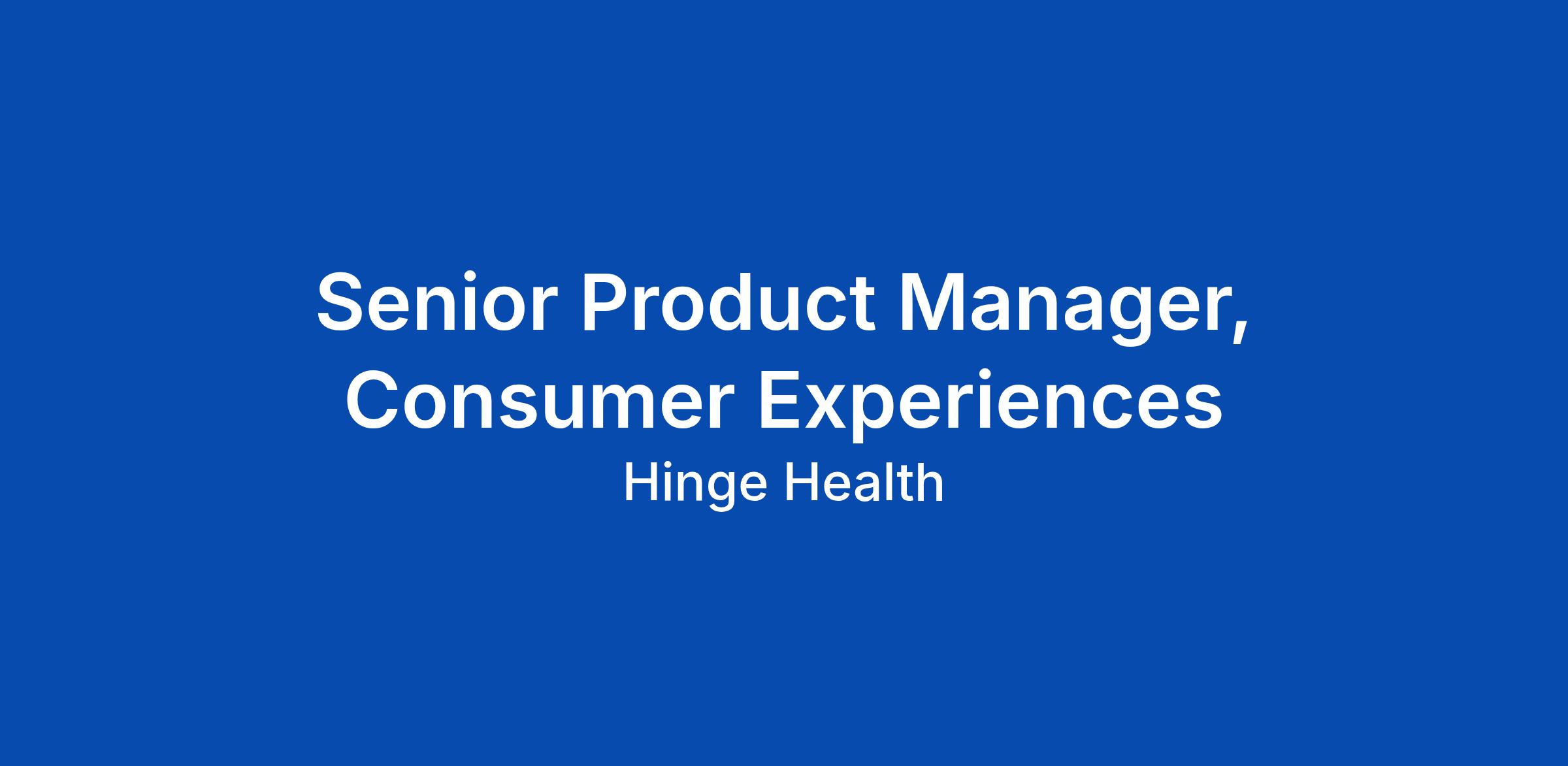 Hinge Health is looking for an experienced, mission-driven Senior Product Manager to join our consumer product team. In this role, you will lead the strategic vision and execution of a high-impact consumer product surface, focusing on creating deeply personalized and engaging experiences for our members. As a Senior PM, you will be a leader within the product organization, working closely with cross-functional partners in engineering, design, and clinical teams to deliver innovative solutions at scale. This role requires a "product crafter" mindsetβsomeone who can balance experimentation with long-term strategic thinking. What makes you a great fit 1. Product Intuition: You notice subtle things about products and people, anticipating non-obvious user problems and identifying opportunities for delight. 2. AI Fluency: You have experience with generative AI, LLMs, or agentic systems to solve user problems and enhance product experiences. 3. Strategic Ownership: You operate with a CEO-like sense of ownership, taking complete accountability for your product area's performance and outcomes. 4. Ambiguity Navigator: You thrive in entrepreneurial environments, developing high-quality hypoth